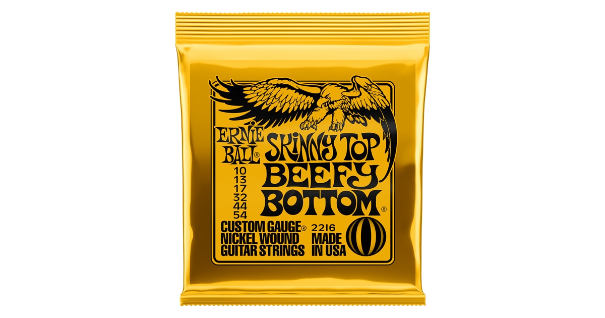 <p>2216 Nickel Wound Skinny Top Beefy Bottom Slinky 10-54 è la muta per chitarra elettrica di Ernie Ball della serie Slinky che combina la suonabilità delle Slinky Regular a corde leggermente più spesse rispetto al popolare set Beefy Slinky. 2216 Skinny Top Beefy Bottom è la muta di corde ideale per il chitarrista solista o per il musicista in cerca di basse frequenze presenti per la ritmica o per gli accordi. </p><p>Caratteristiche:<br />-Sensazione al tatto tipica Slinky<br />-Avvolgimento in acciaio nichelato<br />-Anima esagonale in acciaio ultraresistente<br />-Scalatura: 10, 13, 17, 32, 44, 54</p>