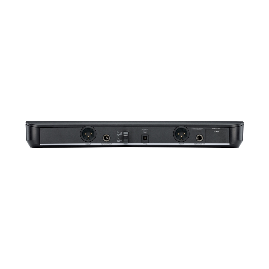 <p>BLX88E è il ricevitore analogico per sistemi microfonici wireless delle serie PG, SM e Beta in versione due canali separati che condividono le stesse caratteristiche del BLX4. Dimensioni e peso: 38x308x101mm; 429 grammi. Alimentazione: 12-15 V c.c. @ 235 mA (BLX88, 320 mA), applicata da un alimentatore esterno (punta positiva). </p>