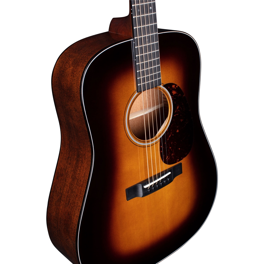 <h1 style="text-align: justify;">La D-18 Sunburst (2025) è la chitarra acustica con forma Dreadnought della serie “Standard” di Martin & Co realizzata con top in Abete, fasce e fondo in Mogano, manico in Hardwood selezionato e tastiera in Ebano. È caratterizzata dalle catene GE-Scalloped che conferiscono maggior brillantezza e proiezione sonora, un profilo del manico GE Modified Low Oval ribassato ulteriormente, tacco, manico e ponte più smussati sui bordi per un maggior comfort e pin del ponte in Ebano. Presenta un nut da 44,45 mm, una lunghezza di scala da 645 mm e finitura gloss su top, fasce e fondo.</h1><h2>Panoramica della D-18 Sunburst (2025) di Martin & Co.</h2><p style="text-align: justify;">Aspetto sobrio, suono senza tempo. Il tono caldo del mogano e dell'abete si unisce alla resa delle catene GE-scalloped sotto la cassa, per un suono autentico, autoritario e chiaro. I dettagli vintage includono meccaniche a ingranaggio aperto e le classiche rifiniture in stile 18, combinate con un manico moderno a profilo ribassato per un suono ricco di carattere.<br />Una delle principali novità della serie Standard 2025 è l'utilizzo di catene Golden Era (GE) in abete Sitka per la tavola, un dettaglio presente anche nella serie Modern Deluxe, che dona un timbro più vintage e arioso, con un sustain potenziato. Il manico con profilo modificato “Low Oval” GE mantiene la classica forma, ma è stato ottimizzato per offrire un appeal vintage. La tastiera è stata assottigliata e presenta bordi stondati per un maggiore comfort, mentre la disposizione delle corde al capotasto è stata perfezionata. Il nuovo ponte GE "modern belly" è dotato di angoli più morbidi e confortevoli. Le chitarre della Standard Series ora sono equipaggiate con Bridge pin in osso o ebano, a seconda del modello. Tra gli aggiornamenti estetici, troviamo il diamante del manico allungato, il capotasto tagliato ad angolo e un tacco più snodato, in stile vintage.</p><p style="text-align: center;"><img alt="Le caratteristiche distintive delle nuove chitarre acustiche della serie Standard 2025 di Martin & Co. " src="https://www.algameko.com/images/uploads/martin-standard-series-refresh-2025.jpg" title="Le caratteristiche distintive delle nuove chitarre acustiche della serie Standard 2025 di Martin & Co. " /></p><h2>Specifiche della D-18 Sunburst (2025) di Martin & Co.</h2><p><strong>Serie</strong>: Standard<br /><strong>Colore Top</strong>: 1935 Sunburst<br /><strong>Forma Corpo</strong>: D-14 Fret<br /><strong>Finitura Top</strong>: Gloss<br /><strong>Binding</strong>: Black<br /><strong>Materiale Inlay Top</strong>: Multi-Stripe<br /><strong>Materiale Top</strong>: Abete<br /><strong>Finitura Fasce e Fondo</strong>: Gloss<br /><strong>Materiale Fondo</strong>: Mogano<br /><strong>Materiale Fasce</strong>: Mogano<br /><strong>Finitura Manico</strong>: Satin<br /><strong>Materiale Manico</strong>: Hardwood selezionato<br /><strong>Profilo Manico</strong>: GE Modified Low Oval<br /><strong>Materiale Tastiera</strong>: Ebano<br /><strong>Materiale Inlay Tastiera</strong>: Abalone<br /><strong>Larghezza Capotasto</strong>: 44,45 mm<br /><strong>Materiale Capotasto</strong>: Osso<br /><strong>Materiale Catene</strong>: Abete<br /><strong>Forma Catene</strong>: GE-Scalloped<br /><strong>Pattern Catene</strong>: X Brace spostato in avanti<br /><strong>Materiale Ponte</strong>: Ebano<br /><strong>Materiale Pin del Ponte</strong>: Ebano<br /><strong>Stile Ponte</strong>: GE Modern Belly- Drop in Saddle<br /><strong>Materiale Saddle</strong>: Osso compensato<br /><strong>Battipenna</strong>: Tartarugato<br /><strong>Radius</strong>: 16"<br /><strong>Lunghezza di Scala</strong>: 645 mm<br /><strong>Meccaniche</strong>: Nickel Open Gear<br /><strong>Elettronica</strong>: No<br /><strong>Custodia</strong>: Hardshell<br /><strong>Modello Custodia</strong>: 12C0072<br /><strong>Corde Consigliate</strong>: Authentic Acoustic Lifespan 2.0 - Medium MA550T</p>