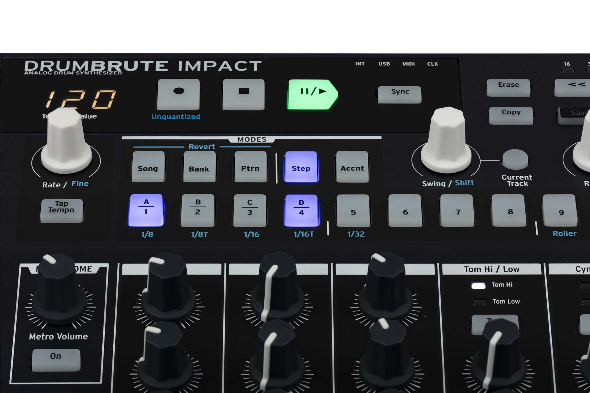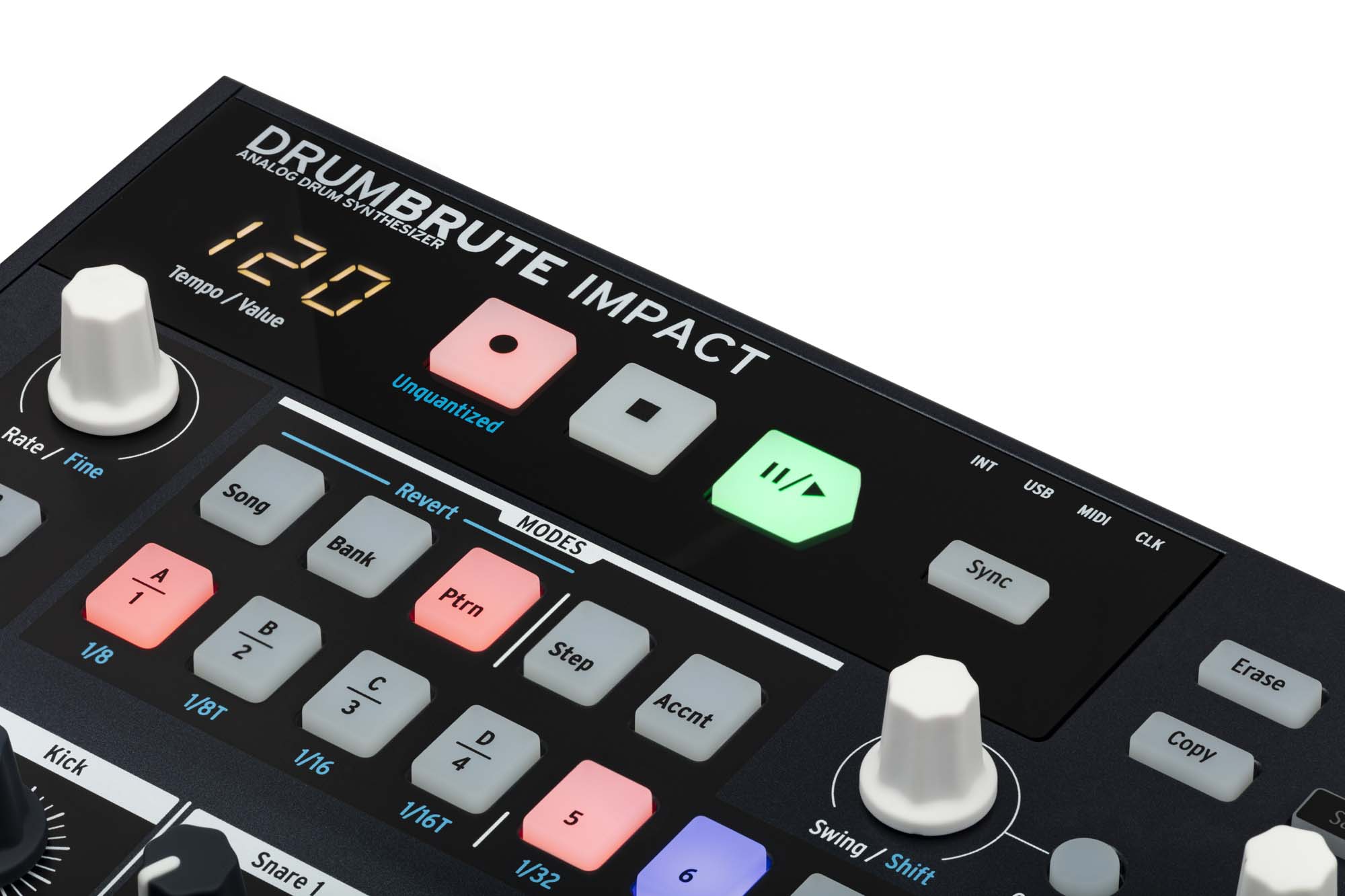 <h1 style="text-align: justify;"><strong><a href="https://algameko.com/it/app/b/arturia/">Arturia</a> DrumBrute Impact </strong>è una <strong>drum machine analogica</strong> compatta progettata per offrire un suono diretto, aggressivo e immediatamente musicale, con un flusso di lavoro interamente hands-on orientato alla performance e alla produzione dinamica. I <strong>10 strumenti analogici</strong>, il <strong>sequencer avanzato con poliritmia</strong>, la <strong>funzione Color</strong> per la modellazione timbrica <strong>per step </strong>e la distorsione integrata rendono <strong>DrumBrute Impact</strong> uno strumento pensato per beatmaker, producer e live performer che cercano carattere, un suono dimpatto e un controllo immediato.</h1><p style="text-align: justify;"><iframe allowfullscreen="" frameborder="0" height="1035" src="https://www.youtube.com/embed/JhVIowuArSo" title="Arturia announces DrumBrute Impact" width="1840"></iframe></p><h2 style="text-align: justify;"><strong>Architettura analogica e carattere timbrico</strong></h2><p style="text-align: justify;"><strong>DrumBrute Impact </strong>è basata su un motore sonoro <strong>interamente analogico</strong>, ottimizzato per generare suoni di batteria compatti, presenti e ad alta pressione sonora. I 10 strumenti integrati coprono l’intero spettro ritmico, da kick a rullanti incisivi, fino a hi-hat, tom, cymbal e una voce FM dedicata per timbriche più taglienti. L’approccio non mira alla neutralità, ma a un suono deciso che occupa lo spazio nel mix senza necessità di pesanti processamenti esterni.</p><h2 style="text-align: justify;"><strong>Color, distorsione e modellazione per step</strong></h2><p style="text-align: justify;">La funzione <strong>Color </strong>rappresenta uno degli elementi distintivi di <strong>DrumBrute Impact</strong>. <strong>Attivabile per strumento </strong>o <strong>per singolo step</strong>, <strong>Color </strong>introduce variazioni timbriche specifiche come <strong>overdrive </strong>sul <strong>kick</strong>, <strong>snap </strong>e <strong>crack </strong>sullo <strong>snare</strong>, o <strong>aural exciter</strong> su <strong>hi-hat</strong> e <strong>tom</strong>. Questa funzione consente di creare pattern dinamici e articolati <strong>senza ricorrere a automazioni esterne</strong>. A completare la sezione sonora è presente una <strong>distorsione analogica sull’uscita master</strong>, ottimizzata per la batteria, che permette di aggiungere saturazione e carattere mantenendo il controllo sull’impatto complessivo.</p><h2 style="text-align: justify;"><strong>Sequencer avanzato e poliritmia</strong></h2><p style="text-align: justify;">Il <strong>sequencer </strong>di <strong>DrumBrute Impact </strong>è progettato per essere immediato ma estremamente flessibile. Ogni pattern può arrivare fino a <strong>64 step</strong>, con la possibilità di impostare <strong>lunghezze indipendenti per ciascuno strumento</strong>, permettendo la creazione di <strong>poliritmie </strong>e <strong>polimetri complessi</strong>. Le funzioni <strong>Roller </strong>e <strong>Looper </strong>consentono interventi performativi in tempo reale, mentre <strong>Random </strong>e <strong>Swing </strong>introducono <strong>variazioni ritmiche controllate</strong>, utili per evitare pattern statici e ripetitivi.</p><h2 style="text-align: justify;"><strong>Workflow performativo e controllo diretto</strong></h2><p style="text-align: justify;"><strong>DrumBrute Impact </strong>è pensata per l’uso diretto, senza menu profondi o interfacce complesse. Tutti i parametri principali sono accessibili dal pannello frontale, favorendo un’interazione immediata sia in studio sia dal vivo. La possibilità di concatenare pattern in song, <strong>salvare set completi</strong> e intervenire sui parametri in tempo reale rende lo strumento adatto a performance strutturate e a jam session improvvisate.</p><h2 style="text-align: justify;"><strong>Connessioni e integrazione studio/live</strong></h2><p style="text-align: justify;">La connettività di <strong>DrumBrute Impact</strong> consente l’integrazione in qualsiasi setup. Oltre alle connessioni <strong>MIDI</strong>, <strong>USB </strong>e <strong>clock analogico</strong>, sono presenti <strong>quattro uscite separate dedicate a kick, snare, hi-hat e voce FM</strong>, utili per il <strong>processing individuale tramite mixer </strong>o <strong>outboard esterni</strong>. L’uscita cuffie dedicata e la gestione intelligente del metronomo facilitano l’utilizzo in contesti live.</p><p style="text-align: justify;"><iframe allowfullscreen="" frameborder="0" height="1035" src="https://www.youtube.com/embed/ua9AE9J6ozQ" title="Arturia Performance | DrumBrute Impact" width="1840"></iframe></p><h2 style="text-align: justify;"><strong>Specifiche tecniche Arturia DrumBrute Impact</strong></h2><p style="text-align: justify;">Tipologia: drum machine analogica<br>Strumenti: 10 voci analogiche<br>Motore sonoro: percorso del segnale analogico<br>Sequencer: fino a 64 pattern da 64 step<br>Poliritmia: lunghezze indipendenti per strumento<br>Funzioni performance: Color per step, Roller, Looper, Random, Swing<br>Distorsione: distorsione analogica sull’uscita master<br>Uscite audio: uscita master + 4 uscite separate<br>Uscita cuffie: jack 3,5 mm<br>Connessioni: MIDI, USB, clock analogico<br>Software incluso: Arturia MIDI Control Center<br>Dimensioni e peso: 350x290x90mm; 1,84kg</p>