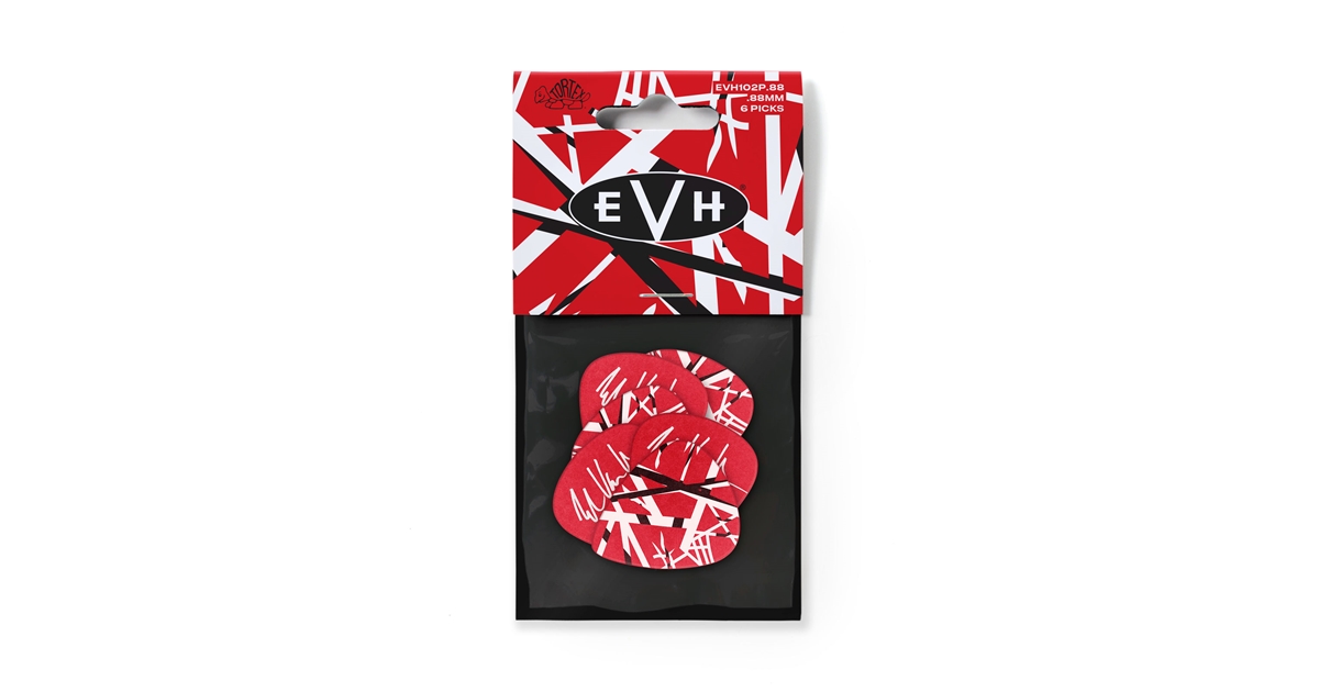 <h1 style="text-align: justify;"><strong>EVH102P088 EVH Tortex Pick .88 mm</strong> è il pack da 6 plettri <strong>Tortex®</strong> signature di <strong>Eddie Van Halen</strong> di <strong>Dunlop</strong>. Con spessore 0.88 mm, questi plettri offrono le leggendarie performance del materiale Tortex e l'artwork della leggendaria chitarra <strong>Frankenstein</strong> di Eddie.</h1><h2>PANORAMICA</h2><p style="text-align: justify;">I plettri <strong>Tortex®</strong> sono estremamente resistenti e possiedono la giusta flessibilità che consente un attacco veloce e brillante. Questi plettri riportano l'artwork basato su una delle chitarre più conosciute al mondo, la <strong>"Frankenstein"</strong> di <strong>Eddie Van Halen</strong>. La confezione contiene 6 plettri da 0.88 mm.</p>
