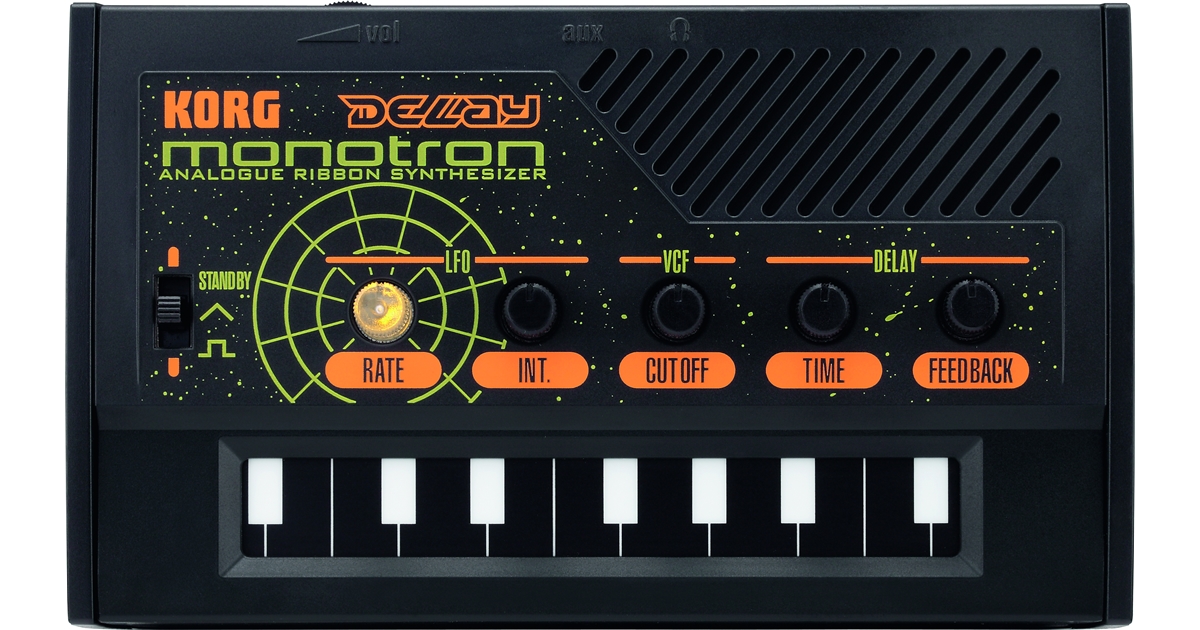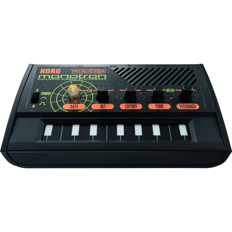 <p>Il <strong>monotron DELAY</strong> è un sintetizzatore analogico progettato e ottimizzato per la creazione di effetti sonori. In aggiunta all'oscillatore analogico, al filtro, e all'LFO questo nuovo modello della serie monotron offre uno Space Delay indispensabile per la creazione di sonorità particolari, "cosmiche". Variando il tempo di delay, il monotron Delay riproduce anche le classiche fluttuazioni di intonazione tipiche degli eco a nastro analogici del passato. Questo imponente e caldo delay aggiungerà un tocco di autenticità in più ai tuoi suoni analogici. Il Low Frequency Oscillator (LFO) viene impiegato per modulare l'intonazione e in questo modello di monotron fornisce due differenti forme d'onda selezionabili dall'utente: quadra e triangolare. Entrambi i parametri di rate (velocità) e intensità (depth) possono sono ipostabili in modo indipendente mediante i rispettivi potenziometri. Per una maggior versatilità, si può sfruttare il trimpot collocato nel pannello posteriore per controllare in modo continuo lo shape dell'onda triangolare, o l'ampiezza della quadra. Utilizzato insieme al delay, l'LFO crea effetti interessanti e fornisce la possibilità di abbellire e rendere particolari e unici i suoni generati.</p><p>La tastiera ribbon del monotron DELAY controlla un range di 4 ottave. Questa è stata progettata per controllare l'intonazione in modo più aggressivo e dinamico, per fare del monotron Delay uno strumento particolarmente indicato per la creazione di effetti speciali. La colorazione invertita della tastiera e la grafica particolare risalteranno nel buio del locale aggiungendo un importante impatto visivo a quello sonoro. monotron DELAY impiega lo stesso circuito VCF degli storici synth semi-modulari KORG MS-10 e MS-20. Realizzati 30 anni fa, questi sintetizzatori sono tutt'oggi molto ricercati dagli appassionati e addetti ai lavori. Il potenziometro Cutoff del VCF ti permette di selezionare il punto di taglio del filtro passa basso, mentre quello Peak serve per controllare la risonanza. Grazie all'ingresso mini-jack "Aux In" disponibile nel pannellino posteriore potrai collegare qualsiasi sorgente audio esterna al monotron DELAY, come un Kaossilator, una chitarra, o un lettore CD e/o .mp3, per poterla così processare attraverso il filtro passa basso risonante e l'effetto Space Delay.</p><h4><strong>Caratteristiche monotron DELAY:</strong></h4><ul style="margin-left: 17px;"><li>Space Delay per effetti eco in stile analogico</li><li>Nuovo LFO con forma d'onda triangolare o quadra</li><li>Tastiera ribbon di tipo WIDE</li><li>Filtro Analogico originale (VCF) derivato da MS-10 e MS-20</li><li>Ingresso Aux per collegamento/processing di sorgenti esterne</li><li>Diffusore audio integrato e alimentazione a pile</li><li>Uscita cuffie</li></ul><h4><strong>SPECIFICHE monotron DELAY:</strong></h4><ul style="margin-left: 17px;"><li>Struttura di sintesi: 1 VCO; 1 VCF; 1 LFO; DELAY</li><li>Switch: Standby / triangolare / quadra</li><li>Potenziometri: LFO Rate, LFO Int., VCF Cutoff, DELAY Time, DELAY Feedback</li><li>Tastiera di tipo Ribbon: Wide con estensione di 4 ottave</li><li>Volume: Headphone Volume</li><li>Aux Input: ?" Stereo Jack</li><li>Headphone Output: Stereo Jack</li><li>Speaker: interno, in miniatura, che si disabilita con inserimento cuffie</li><li>Alimentazione: 2 pile di tipo AAA batteries, si raccomandano le alkaline</li><li>Autonomia delle batterie: circa 8 ore con pile alkaline</li><li>In dotazione: Manuale, 2 pile AAA (per la verifica del funzionamento)</li><li>Dimensioni: 120 mm x 72 mm x 28 mm</li><li>Peso senza batterie: 95 g</li></ul>