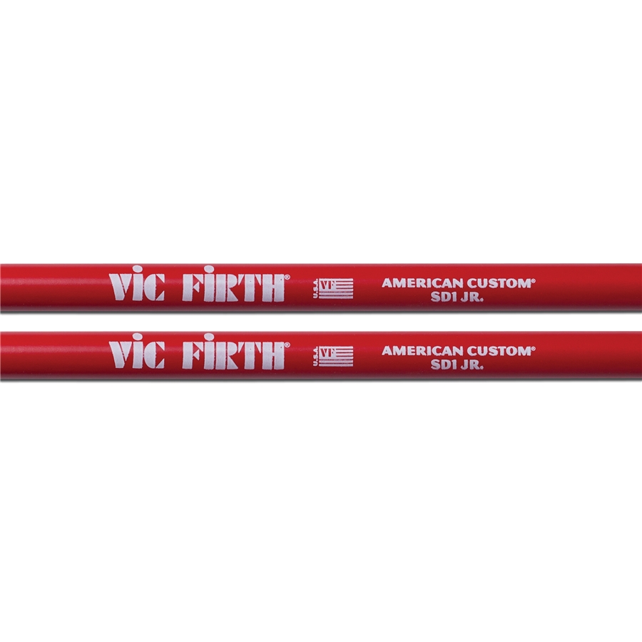 <h1>La bacchetta per batteria Vic Firth SD1 Jr. American Custom Maple &egrave; una versione ridotta del modello SD1 General. Perfetto per le mani di un giovane studente. Finitura Rossa.</h1><h2>Specifiche:</h2><h3>Diametro: .615"" | 1,56 cm<br />Lunghezza: 15,563&rdquo; | 39,53 cm<br />Famiglia: American Custom<br />Tipo di legno: Maple<br />Cono: Corto<br />Finitura: Verniciata Rossa<br />Materiale punta: Legno<br />Forma punta: Rotonda</h3>