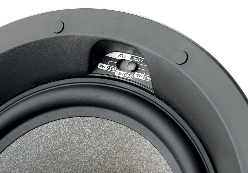 <h1 data-end="651" data-start="338">Il diffusore da incasso <strong>Focal 100 ICW6-T</strong> è un sistema a 2 vie coassiali pensato per applicazioni di diffusione sonora distribuita in ambienti residenziali e commerciali. Il progetto compatto con profondità di montaggio ridotta consente l’installazione anche in spazi con limitata disponibilità di incasso.</h1><p data-end="1034" data-start="653">Il diffusore è equipaggiato con un <strong data-end="727" data-start="688">midbass da 6,5 pollici in Polyglass</strong>, progettato per garantire una gamma media naturale, priva di colorazioni, e una risposta sui bassi più estesa rispetto ai modelli di diametro inferiore. Il <strong data-end="940" data-start="884">tweeter da 1 pollice a cupola invertita in alluminio</strong> assicura una dispersione migliorata delle alte frequenze e una copertura sonora più uniforme.</p><p data-end="1314" data-start="1036">Il crossover <strong data-end="1056" data-start="1049">ODC</strong> contribuisce al controllo della direttività, evitando concentrazioni del suono e migliorando la diffusione negli ambienti installativi. Il trasformatore integrato consente la selezione della potenza per impianti <strong data-end="1283" data-start="1269">70V e 100V</strong> tramite interruttore dedicato.</p><p data-end="1811" data-start="1316">La struttura unibody ad alta rigidità riduce le vibrazioni indesiderate, mentre la resistenza all’umidità rende il diffusore adatto anche a contesti più critici. Il sistema di fissaggio con quattro staffe a presa ottimizzata facilita un’installazione rapida e sicura; le viti sono progettate per non fuoriuscire durante le operazioni di smontaggio. Le griglie magnetiche incluse, rotonde o quadrate, sono verniciabili per una perfetta integrazione estetica.</p><p data-end="1811" data-start="1316"> </p><h2 data-end="1811" data-start="1316">Specifiche Tecniche</h2><p data-end="1811" data-start="1316"><strong data-end="1848" data-start="1835">Tipologia</strong>: diffusore da incasso a 2 vie coassiale<br data-end="1891" data-start="1888"><strong data-end="1908" data-start="1891">Installazione</strong>: parete o soffitto<br data-end="1930" data-start="1927"><strong data-end="1953" data-start="1930">Compatibilità linea</strong>: 70V e 100V selezionabili<br data-end="1982" data-start="1979"><strong data-end="1992" data-start="1982">Woofer</strong>: 6,5 pollici in Polyglass<br data-end="2021" data-start="2018"><strong data-end="2032" data-start="2021">Tweeter</strong>: 1 pollice a cupola invertita in alluminio<br data-end="2078" data-start="2075"><strong data-end="2103" data-start="2078">Risposta in frequenza</strong>: 62 Hz – 23 kHz<br data-end="2122" data-start="2119"><strong data-end="2143" data-start="2122">Frequenza a -6 dB</strong>: 50 Hz<br data-end="2153" data-start="2150"><strong data-end="2168" data-start="2153">Sensibilità</strong>: 89 dB a 2,83 V su 1 metro<br data-end="2198" data-start="2195"><strong data-end="2227" data-start="2198">Potenza selezionabile 70V</strong>: 4 W, 7,5 W, 15 W<br data-end="2248" data-start="2245"><strong data-end="2278" data-start="2248">Potenza selezionabile 100V</strong>: 8 W, 15 W, 30 W<br data-end="2298" data-start="2295"><strong data-end="2318" data-start="2298">Diametro esterno</strong>: 208 mm<br data-end="2329" data-start="2326"><strong data-end="2350" data-start="2329">Profondità totale</strong>: 95 mm<br data-end="2360" data-start="2357"><strong data-end="2388" data-start="2360">Diametro foro di incasso</strong>: 184 mm<br data-end="2399" data-start="2396"><strong data-end="2426" data-start="2399">Profondità dalla parete</strong>: 91 mm<br data-end="2436" data-start="2433"><strong data-end="2467" data-start="2436">Spessore parete compatibile</strong>: da 8 a 40 mm<br data-end="2484" data-start="2481"><strong data-end="2510" data-start="2484">Peso netto con griglia</strong>: 1,7 kg<br data-end="2521" data-start="2518"><strong data-end="2547" data-start="2521">Resistenza all’umidità</strong>: sì.</p>