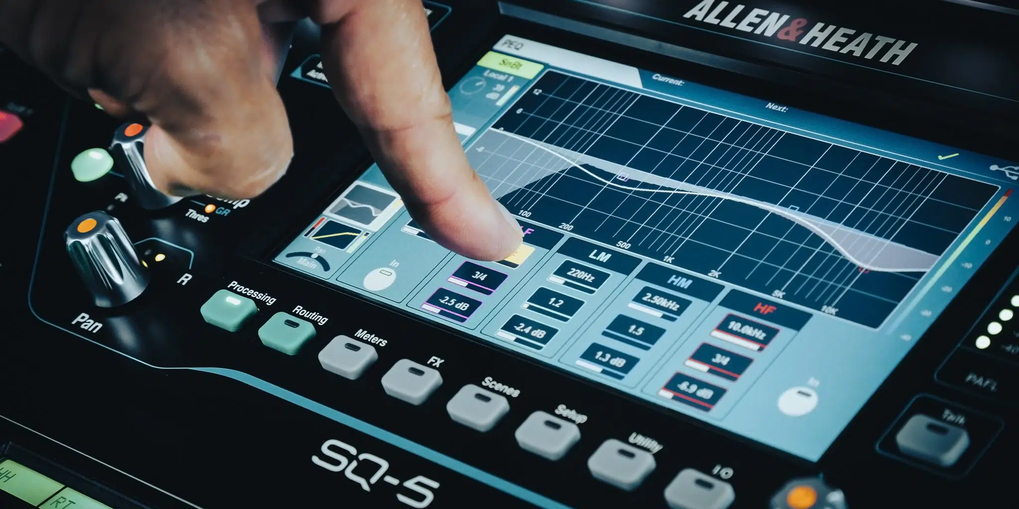 <p> </p><h1 style="text-align: justify;">Alimentato dal rivoluzionario motore FPGA XCVI a 96kHz di <strong><a href="https://www.algameko.com/it/brands/allen-heath">Allen & Heath</a>,</strong> <strong>SQ-5</strong> è progettato per i professionisti che lavorano nel campo di live audio, registrazione e streaming. Offrendo audio ad alta risoluzione con una latenza inferiore a 0,7 ms, <strong><a href="https://www.algameko.com/it/brands/allen-heath">Allen & Heath</a> SQ-5</strong> ha potenza e fedeltà audio senza rivali. <strong><a href="https://www.algameko.com/it/brands/allen-heath">Allen & Heath</a> SQ-5 </strong>dispone di 16 ingressi mono con rispettivi preamplificatori microfonici e 3 ingressi stereo, ingressi che è possibile espandere fino a 48 canali di ingresso, il mixer è dotato di 8 stereo FX engines con i dedicati ritorni, 12 uscite XLR, AES out e porta SLink.</h1><h2 style="text-align: justify;"><strong>Esperienza di mixaggio</strong></h2><p style="text-align: justify;">Gli ingegneri e sviluppatori<a href="https://www.algameko.com/it/brands/allen-heath"> </a><strong><a href="https://www.algameko.com/it/brands/allen-heath">Allen & Heath</a> </strong>pensano che sia l’utente a dover decidere come funziona il mixer e non viceversa. Ecco perché il mixer <strong><a href="https://www.algameko.com/it/brands/allen-heath">Allen & Heath</a> SQ-5 </strong>è dotato di opzioni che consentono di personalizzare il workflow della macchina. Canali e mix possono essere trascinati e rilasciati individualmente su qualsiasi channel strip, con nomi personalizzati e con codifica a colori sui display, così da avere il pieno controllo del layout e tutti i modelli sono dotati di SoftKey assegnabili. Il touchscreen da 7" e la relativa manopola rendono la navigazione e la regolazione dei parametri di <strong><a href="https://www.algameko.com/it/brands/allen-heath">Allen & Heath</a> SQ-5</strong> veloce e intuitiva. Un pulsante di mixaggio "channel to all" ci consente di accede istantaneamente a tutti i livelli di mandata e alle assegnazioni per il canale selezionato. Ogni channel strip è dotata del sistema brevettato <a href="https://www.algameko.com/it/brands/allen-heath"><strong>Allen & Heath</strong></a> di metering cromatico, che fornisce un'indicazione del livello visiva utilizzando luminosità e colore variabili.</p><h2 style="text-align: justify;"><strong>Channel strip</strong></h2><p style="text-align: justify;">Sul pannello frontale troviamo 16 fader per i canali del mixer e 1 dedicato ai vari master, tutti motorizzati. 6 layer di comandi assegnabili tramite i bottoni dedicati, evidenziati nell’immagine in verde, danno accesso a 96 channel strip assegnabili rendendo possibile controllare qualsiasi combinazione di canali, ritorni, master e DCA. Ogni channel strip è dotata di mute, select e tasti PAFL, indicatore LED per segnale e picco, evidenziati in blu, e dispongono di LCD a colori retroilluminato per facilitare il color coding delle tracce. In rosso i tasti copia, incolla e reset per i vari parametri, il Master Fader può essere utilizzato anche per controllare i volumi dei vari mix utilizzando invece i tasti evidenziati in giallo alla sua destra.</p><p align="center"><img alt="channel strip dell'Allen & Heath SQ-5" src="https://www.algameko.com/images/uploads/faders sq5.jpg" /></p><h2 style="text-align: justify;"><strong>Controlli del mixer</strong></h2><p style="text-align: justify;">L’<strong><a href="https://www.algameko.com/it/brands/allen-heath">Allen & Heath</a> SQ-5 </strong>è un mixer digitale ricco di funzioni alle quali possiamo accedere tramite un layout di controlli fisici ben definito e chiaro. Abbiamo prima visto come navigare tra i vari layer assegnabili, mix, FX, uscite e canali in ingresso; andiamo ora a vedere, una volta selezionato il canale su cui ci interessa lavorare, come modificarne i parametri principali. Nell’immagine sottostante, evidenziati in blu, troviamo sulla sinistra dello schermo i controlli dedicati al Preamp, insert, al filtro passa alto, gate, compressore e pan mentre a destra troviamo quelli dedicati alla sezione EQ compreso il bottone ‘fader flip’ che ci consente, quando lavoriamo con l’equalizzatore grafico, di usare appunto i fader per controllare le bande del GEQ. Al centro, evidenziato in rosso, troviamo il display touch screen da 7 pollici, i bottoni che ci permettono di navigare tra le varie funzioni del mixer e una manopola; con questa possiamo selezionare un parametro attraverso lo schermo e andarne a modificare il valore. <strong>Gli 8 softkey assegnabili sia alle funzioni interne del mixer che via MIDI a una DAW,<font color="#0782c1"> </font></strong>sono evidenziati in verde, in giallo troviamo il pulsante per accedere alle librerie dei vari preset e in fine, evidenziato in arancione, abbiamo un ingresso cuffia con il relativo controllo del volume.</p><p align="center"><img alt="controlli per canale disponibili sull'Allen & Heath SQ-5" src="https://www.algameko.com/images/uploads/controlli sq5.jpg" /></p><h2><strong>Input e Output fisici</strong></h2><p align="center"><img alt="ingressi e uscite dell'Allen & Heath SQ-5" src="https://www.algameko.com/images/uploads/in-out sq-5.jpg" /></p><p style="text-align: justify;"><strong><a href="https://www.algameko.com/it/brands/allen-heath">Allen & Heath </a>SQ-5 </strong>dispone di 16 ingressi XLR con preamp per segnale microfonico o di linea, 2 stereo inputs su connettori TRS da ¼”, un ingresso di linea stereo su connettore minijack da 3,5mm e un ingresso per talkback su XLR. Le uscite da 1 a 10 per i Mix sono su connettri XLR, le uscite 11/12 sono destinate al Main Out e sono anche esse su connettori XLR. Troviamo due uscite su TRS per out A e out B e un’uscita su XLR per AES out.</p><h2><strong>I/O Port</strong></h2><p style="text-align: justify;">È possibile espandere il numero di ingressi e i protocolli di connessione del mixer installando nell'apposita slot I/O Port u