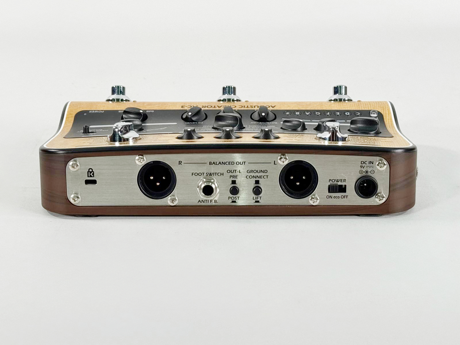 16 preset chitarre/body per un'accuratissima emulazione timbrica - 15 target di chitarre da raggiungere con emulazione timbrica - EQ a tre bande - 9 effetti sul DSP interno(chorus,reverb,delay,ecc.) - Frequenza di campionamento 44,1 kHz - Conversione A/D/A 24bit - Processing del segnale a 32bit - Boost a pedale regolabile fino a 9dB - Accordatore cromatico incorporato - 2 x Ingresso e uscita jack da 1/4'' - 2 x Uscita XLR bilanciata per utilizzo D.I. - Ingresso piezo/magnetico - compressore - volume per controllare segnale in ingresso - anti -feedback - Alimentazione con 4 batterie AA (non comprese), AD-16 (incluso) o USB bus powered
