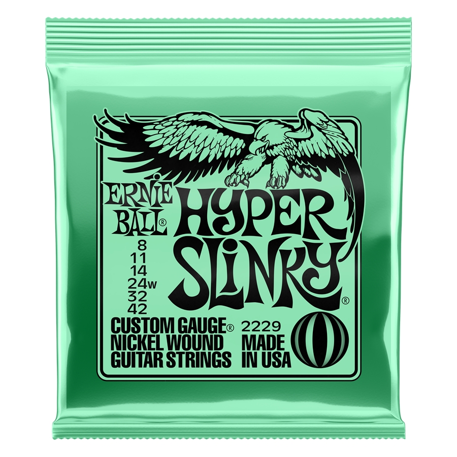 <h1 style="text-align: justify;">Le Hyper Slinky P02229 sono le corde per chitarra elettrica di casa Ernie Ball che presentano una tensione minore sulle corde pi&ugrave; acute. La scalatura Custom &egrave; 0.08 - 0.42. Ideali per i chitarristi alla ricerca di maggior suonabilit&agrave;, mantenendo il timbro Slinky.</h1><h2 style="text-align: justify;">PANORAMICA DELLE HYPER SLINKY P02229 DI ERNIE BALL</h2><p style="text-align: justify;">Le Hyper Slinky si collocano a met&agrave; strada tra le popolari corde Super Slinky e le Extra Slinky, e forniscono una sensazione leggera e veloce con una tensione lievemente inferiore sulle corde superiori. Questa combinazione &egrave; perfetta per i chitarristi alla ricerca di una maggiore suonabilit&agrave; con differenze minime nel tono e nella tensione rispetto alle corde Super Slinky. La corda &egrave; caratterizzata da un&#39;anima esagonale stagnata avvolta da un filo d&#39;acciaio nichelato che conferisce quel tocco e quel tono tipici di Slinky su cui i chitarristi fanno affidamento da decenni.</p><h2 style="text-align: justify;">SPECIFICHE DELLE HYPER SLINKY P02229 DI ERNIE BALL</h2><p><strong>Scalatura Corde</strong>: 0.08, 0.11, 0.14, 0.24w, 0.32, 0.42</p>