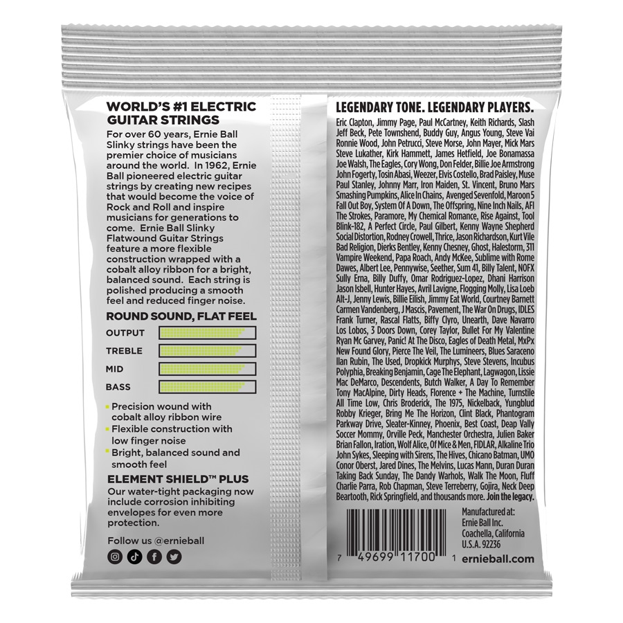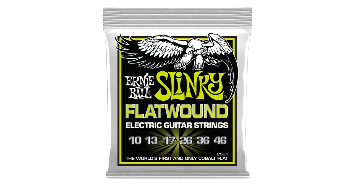 <h1 style="text-align: justify;">2591 &egrave; il set di corde per chitarra elettrica della serie &quot;Slinky Flatwound&quot; di Ernie Ball con scalatura 10-46, realizzato con corde dal rivestimento liscio. Ogni corda &egrave; avvolta con un nastro brevettato in lega di cobalto, per restituire un suono naturale e rotondo, ideali per suonare musica jazz.</h1><h2>PANORAMICA DEL SET DI CORDE 2591 SLINKY FLATWOUND DI ERNIE BALL</h2><p style="text-align: justify;">Le corde Slinky Flatwound sono ora disponibili in set per chitarra! Tre nuove scalature sono state aggiunte alla gamma di corde Slinky Flatwound di Ernie Ball. I set sono proposti nei calibri Regular (10-46), Power (11-48) e Super (9-42) Slinky. Questi set sono avvolti con un nastro brevettato in lega di cobalto per un suono rotondo, con una risposta naturale.</p><h2>PUNTI DI FORZA DEL SET DI CORDE 2591 SLINKY FLATWOUND DI ERNIE BALL</h2><ul>    <li>Avvolgimento di precisione con filo a nastro in lega di cobalto</li>    <li>Costruzione flessibile con basso rumore delle dita</li>    <li>Suono rotondo e risposta naturale</li>    <li>Prodotta nel sud della California, negli Stati Uniti, con i materiali pi&ugrave; pregiati</li></ul><h2>SPECIFICHE DEL SET DI CORDE 2591 SLINKY FLATWOUND DI ERNIE BALL</h2><p><strong>Materiale avvolgimento</strong>: filo a nastro in lega di cobalto<br /><strong>Diametri corde</strong>: .010, .013, .017, .026, .036, .046</p>