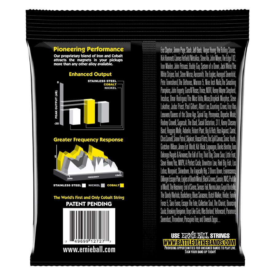 Concepite per ottenere il massimo volume e chiarezza, le corde per chitarra Ernie Ball Cobalt Slinky rappresentano la più recente innovazione nella tecnologia delle corde. Con l'obiettivo di offrire ai chitarristi una nuova voce, le corde Cobalt offrono una gamma dinamica estesa, un'incredibile risposta armonica, una gamma bassa più corposa, ed acuti chiari e definiti. Il cobalto fornisce una relazione magnetica più intensa tra i pickup e le corde rispetto a qualsiasi altra lega precedentemente disponibile. Le Cobalt Slinky sono anche morbide e setose al tatto, rendendo un piacere l'esecuzione dei bending. Diametri: .011, .015, .022, .030, .042, .054