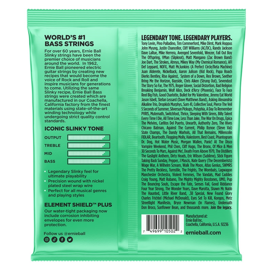 <h1 style="text-align: justify;">Le Hyper Slinky Bass sono le corde per basso elettrico 4 corde di casa Ernie Ball che presentano una tensione media sulle corde pi&ugrave; gravi e una tensione leggera sulle corde pi&ugrave; acute. La scalatura custom &egrave; 40-100 e sono avvolte con Acciaio nickelato.</h1><h2>PANORAMICA DELLE HYPER SLINKY BASS DI ERNIE BALL</h2><p style="text-align: justify;">Le corde per basso Hyper Slinky sono caratterizzate dallo stesso grande tono brillante ed equilibrato tipico delle Slinky in una nuova combinazione ibrida per basso a 4 corde. Le corde Hyper Slinky Bass si collocano a met&agrave; strada tra le corde per basso Super Slinky e le Extra Slinky e forniscono una sensazione bilanciata su tutte le 4 corde. Questa nuova combinazione &egrave; ideale per i bassisti che preferiscono una tensione moderata sulle corde pi&ugrave; basse e una tensione pi&ugrave; leggera sulle corde pi&ugrave; alte per maggiore suonabilit&agrave; e scatto. La corda &egrave; caratterizzata da un&#39;anima esagonale stagnata avvolta da un filo d&#39;acciaio nichelato che conferisce quel tocco e quel tono tipici di Slinky su cui i chitarristi fanno affidamento da decenni.</p><h2>PUNTI DI FORZA DELLE HYPER SLINKY BASS DI ERNIE BALL</h2><ul>    <li>Avvolgimento di precisione con acciaio nichelato;</li>    <li>Filo d&#39;acciaio stagnato ad alto tenore di carbonio;</li>    <li>Tono brillante ed equilibrato;</li>    <li>Sensazione tipica delle corde Slinky;</li>    <li>Confezione protettiva;</li>    <li>Realizzate nel sud della California, USA, con i materiali<br />    pi&ugrave; pregiati e freschi.</li></ul><h2>SPECIFICHE DELLE HYPER SLINKY BASS DI ERNIE BALL</h2><p><strong>Scalatura Corde</strong>: 0.40, 0.60, 0.80, 1.00</p>
