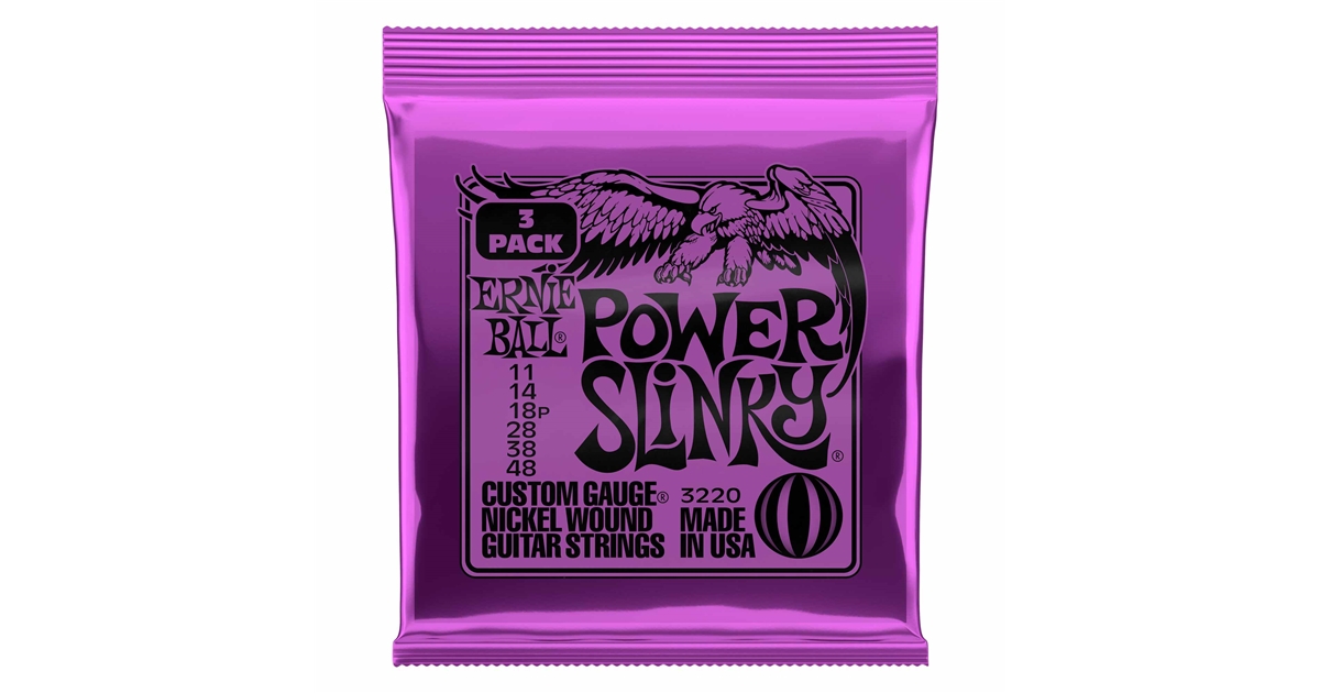 Oggi disponibili nella conveniente confezione da tre mute, le corde per chitarra elettrica Ernie Ball Power Slinky sono la scelta perfetta per chi vuole suonare parti ritmiche solide e robuste in generi come il rock and roll o il blues. Le Power Slinky sono le preferite da Slash, dai Metallica, e da Kenny Wayne Shepherd per la combinazione di diametri più spessi che offre un suono leggermente più potente. Queste corde sono realizzate rispettando gli standard più elevati e le specifiche più stringenti per garantire una qualità costante, prestazioni ottimali e la massima longevità. Le corde avvolte Power Slinky vengono costruite con un filo in acciaio nichelato, avvolto attorno ad un'anima esagonale in acciaio. Le corde lisce sono costruite in acciaio temprato ad elevato contenuto di carbonio placcate allo stagno, e producono un suono ben bilanciato per la vostra chitarra. Diametri: .011, .014, .018p, .028, .038, .048
