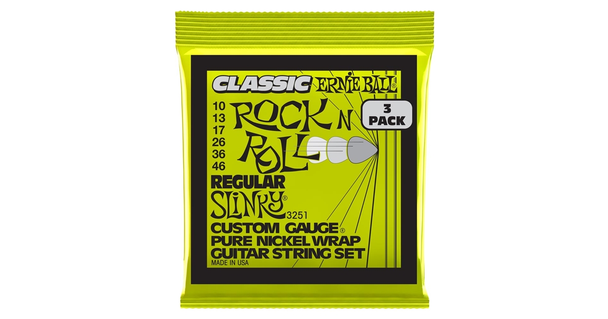 <h1 style="text-align: justify;">3251 &egrave; il pack da tre set di corde per chitarra elettrica della serie Regular Slinky Classic Rock N Roll&nbsp;con scalatura 10-46 di casa Ernie Ball. Sono costruite con un filo in puro nichel avvolto su un&#39;anima esagonale in acciaio placcato a stagno, producendo&nbsp;un suono caldo e ricco unito all&#39; inconfondibile sensazione Slinky al tatto.</h1><h2 style="text-align: justify;">PANORAMICA DEL 3-PACK 3251 DI ERNIE BALL</h2><p style="text-align: justify;">Da oltre 60 anni le corde Ernie Ball sono la scelta preferita dai musicisti di tutto il mondo. Ernie Ball ha aggiunto ora altre 15 delle sue corde pi&ugrave; popolari in comode confezioni da 3 pacchi. Si tratta di set di corde Slinky, Classic Rock &#39;n Roll e Earthwood di vari calibri. Tutte le confezioni da 3 sono composte da set sigillati singolarmente per una protezione duratura e una migliore conservazione. Queste confezioni rappresentano una soluzione conveniente ed economica per i musicisti che acquistano pi&ugrave; set contemporaneamente, garantendo che ogni set rimanga il pi&ugrave; fresco possibile.</p><h2>SPECIFICHE&nbsp;DEL 3-PACK 3251 DI ERNIE BALL</h2><p><strong>Scalatura corde</strong>: .010, .013, .017, .026, .036, .046</p>