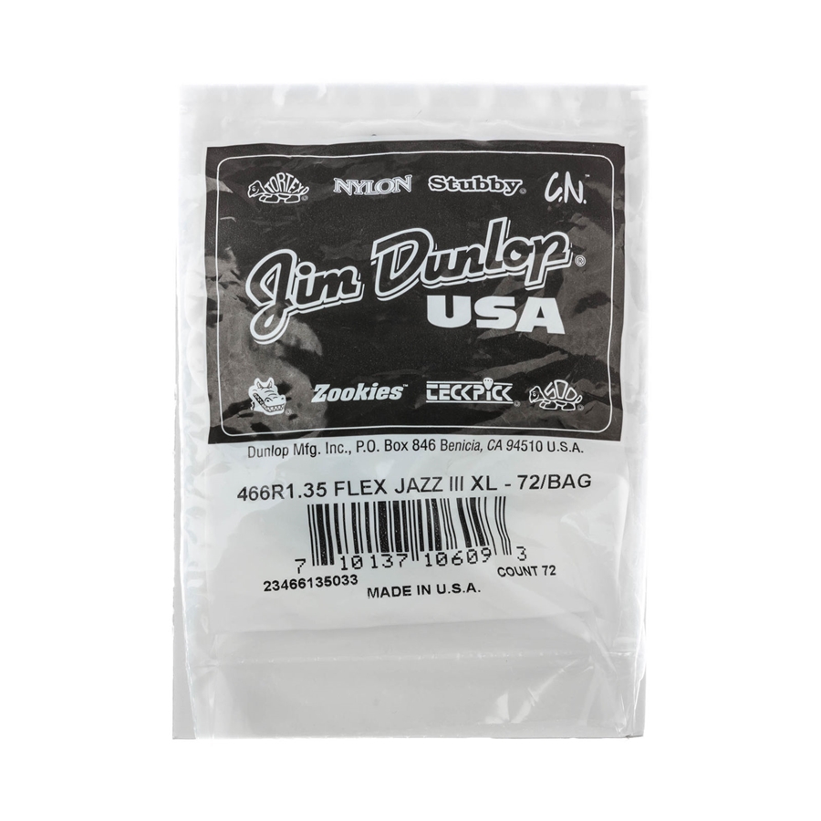 Dunlop 466R135 Tortex Flex Jazz III XL 1.35 mm Bag/72