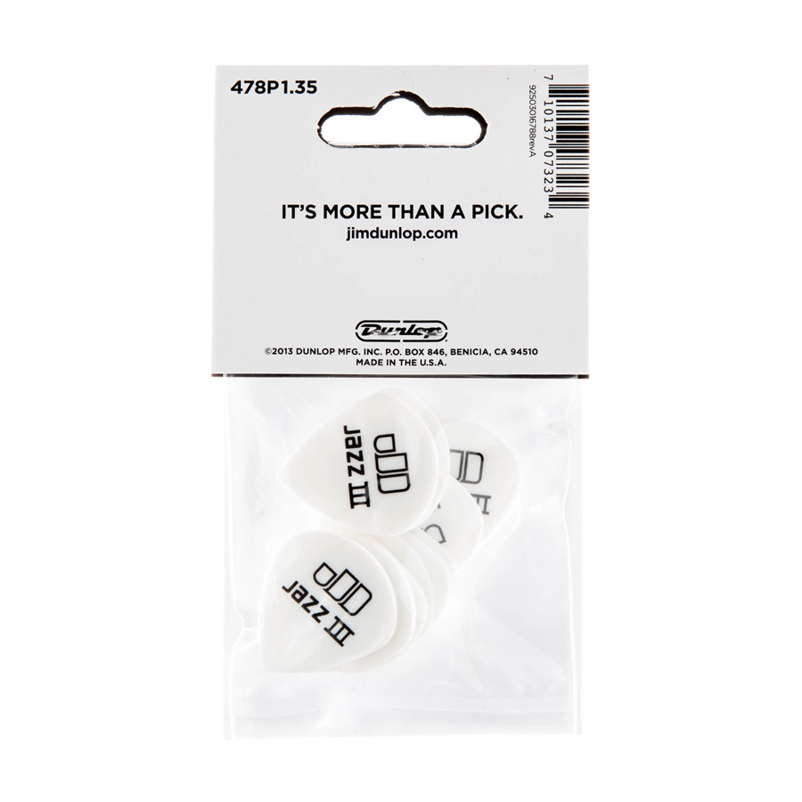 Dunlop 478P1.35 TORTEX WHITE JAZZ III, 135MM