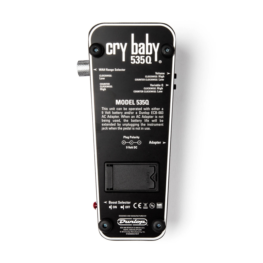 <h1 style="text-align: justify;">Il <strong>535Q Cry Baby® Multi-Wah</strong> è il <strong>pedale wah</strong> di <strong>Jim Dunlop</strong> con un <strong>Range Selector</strong> a sei posizioni, un controllo<strong>Variable Q</strong> e un <strong>boost</strong> selezionabile, che ti permette di trovare il tuo suono wah definitivo.</h1><h2>PANORAMICA</h2><p style="text-align: justify;">Gli ingegneri di <strong>Dunlop</strong> hanno collaborato a stretto contatto con i migliori chitarristi al mondo per progettare il <strong>535Q Cry Baby Multi-Wah</strong>, un pedale che ti permette di trovare il tuo suono grazie alle possibilità di personalizzazione. Il <strong>Range Selector</strong> a sei posizioni ti permette di scegliere tra sei differenti range di frequenze basati sulle caratteristiche dei Cry Baby più conosciuti. Il controllo <strong>Variable Q</strong> ti permette di modellare la risposta del wah con una semplice manopola. Una volta che avrai trovato il tuo suono, assicurati di farti sentire grazie al <strong>boost fino a +18 dB</strong> che aumenta il sustain di ogni nota.</p><h2>ALIMENTAZIONE</h2><p style="text-align: justify;">Questo pedale può essere alimentato con una batteria da 9-volt o con un adattatore AC, come il Dunlop ECB003, l'Iso-Brick o il Mini Iso-Brick (non inclusi).</p><h2>CONTROLLI</h2><p><strong>Volume:</strong> imposta il livello di gain fornito dal boost attivabile via switch;<br><strong>Variable Q:</strong> regola l'ampiezza del range di frequenze;<br><strong>Boost:</strong> aggiunge una quantità di gain impostata con il controllo Volume.<br></p><h2>PUNTI DI FORZA</h2><ul style="margin-left: 17px;"><li>Estrema personalizzazione;</li><li>Sei differenti range di frequenze;</li><li>Controllo Variable Q per impostare la risposta del wah;</li><li>Boost fino a +18 dB.</li></ul><h2>SPECIFICHE TECNICHE DEL 535 Q CRY BABY MULTI-WAH</h2><p><strong>Impedenza in ingresso:</strong> 1 MOhm<br><strong>Impedenza in uscita:</strong> 1 kOhm<br><strong>Rapporto segnale-rumore tallone verso il basso:</strong> 90 dBV<br><strong>Rapporto segnale-rumore punta verso il basso:</strong> 97 dBV<br><strong>Range di frequenze:</strong> <ul style="margin-left: 17px;"><li> Posizione 1: 440 Hz - 2200 Hz</li><li> Posizione 2: 400 Hz - 1900 Hz</li><li> Posizione 3: 375 Hz - 1800 Hz</li><li> Posizione 4: 345 Hz - 1600 Hz</li><li> Posizione 5: 395 Hz - 1400 Hz</li><li> Posizione 6: 250 Hz - 1200 Hz</li></ul><strong>Gain con il controllo Q al massimo e il boost disattivato:</strong> 15 dB<br><strong>Range controllo boost:</strong> da 0.1 dB a 17 dB<br><strong>Assorbimento di corrente:</strong> 2.5 mA<br><strong>Alimentazione:</strong> 9 volt DC<br></p>