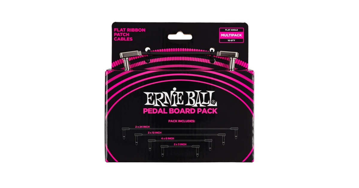 <p class="lead">6224 Flat Ribbon Patch Cables Multi-Pack è il set di Ernie Ball composto da 10 cavi patch con connettore piatto, ideati per allestire la tua pedaliera in modo facile e ordinato.</p><p>I Flat Ribbon Patch Cables sono sviluppati utilizzando componenti di alta qualità progettati per durare nel tempo. Il cavo piatto e i connettori angolari dal profilo schiacciato, consentono l'ottimizzazione dei cablaggi in pedaliera. Grazie all'utilizzo di materiali di schermatura multipli, I Flat Ribbon Patch Cables mantengo inalterato il segnale e il rivestimento in PVC garantisce prestazioni di lunga durata.</p><p><strong>SPECIFICHE:</strong><br><strong>Connettori:</strong> 2x angolari piatti<br><strong>Rivestimento:</strong> PVC Nero<br><strong>Contenuto della scatola:</strong> 2x 7,62 cm - 4 x 15,24 cm - 2x 30,48 - 2x 60,96</p></p><strong>CARATTERISTICHE:</strong><br>- Cavo e connettori dal profilo piatto ideali per le pedaliere<br>- Filamenti in rame privo di ossigeno al 99,95% resistente alla corrosione<br>- Doppia schermatura per maggiore resistenza e riduzione del rumore di fondo<br>- Timbro dagli alti cristallini, medi definiti, ricco di armoniche<br>- Costruito per resistere in tutte le condizioni</p><center><iframe width="1904" height="711" src="https://www.youtube.com/embed/4BTonZH7lk8" title="YouTube video player" frameborder="0" allow="accelerometer; autoplay; clipboard-write; encrypted-media; gyroscope; picture-in-picture" allowfullscreen></iframe></center><br><br>