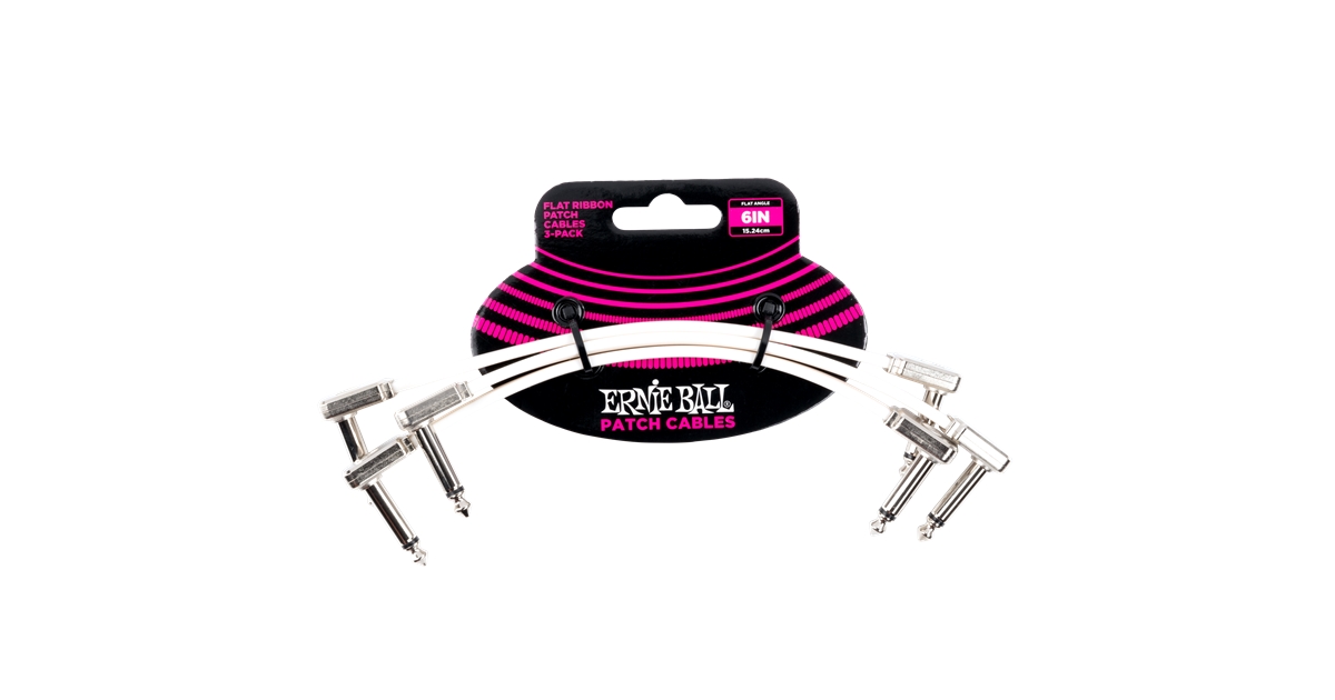 Ernie Ball 6385 Flat Ribbon Patch Cable White 15.24cm 3Pk