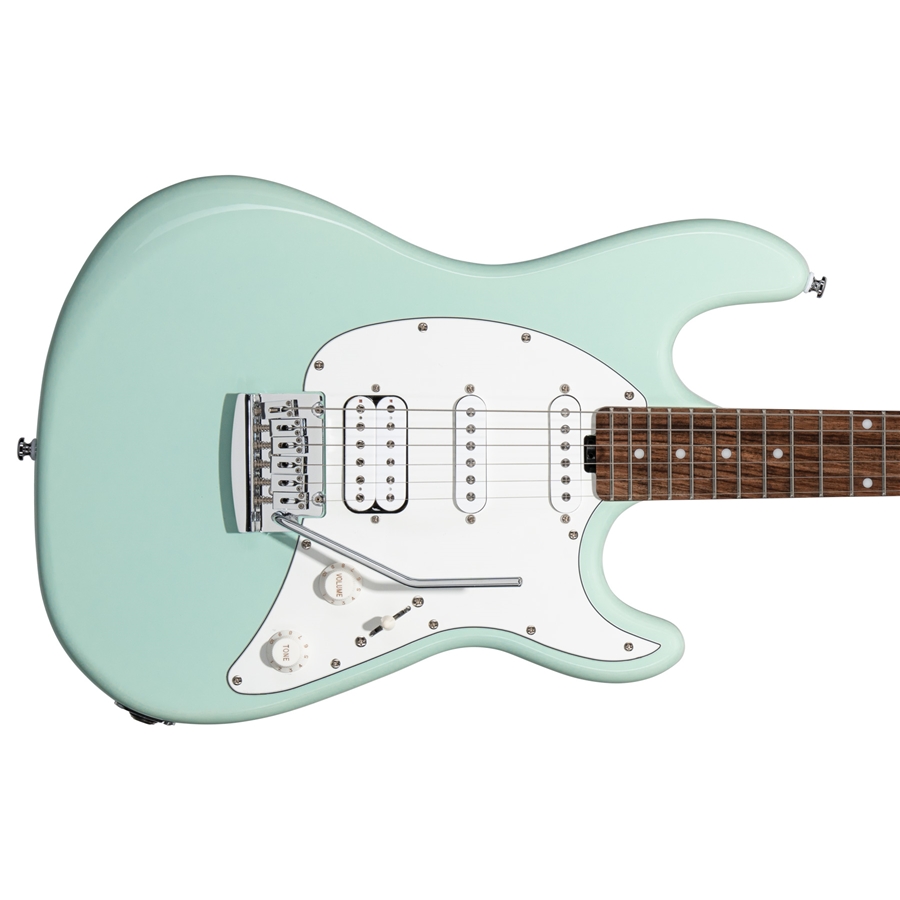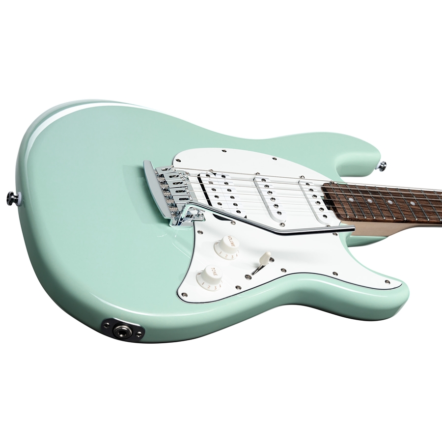 <h1 style="text-align: justify;">La Cutlass CT30HSS Mint Green è la chitarra elettrica della serie "Cutlass" di Sterling by Music Man realizzata con corpo in Pioppo, manico in Acero e tastiera 22 tasti in Laurel. Monta un ponte Fulcrum Tremolo con leva e una configurazione di pickup HSS, controlli di Volume e Tono e selettore blade a 5 vie. Una chitarra di ispirazione vintage ma con un carattere moderno.</h1><center><iframe allowfullscreen="allowfullscreen" frameborder="0" height="720" src="https://www.youtube.com/embed/C5o-Ds5bhsI" title="Sterling by Music Man | Cutlass Demo feat. Nicholas Veinoglou | CT30HSS" width="1280"></iframe></center><p> </p><h2>PANORAMICA DELLA CUTLASS CT30HSS MINT GREEN DI STERLING BY MUSIC MAN</h2><p style="text-align: justify;">Ispirata alle chitarre vintage, ma realizzata con ornamenti moderni, la Cutlass CT30HSS mette un suono senza tempo nel palmo delle vostre mani. Questa chitarra presenta una configurazione di pickup HSS con commutazione a 5 vie, tremolo in stile vintage e paletta 4+2 sovradimensionata. Disponibile nei colori Mint Green, Vintage Sunburst, Vintage Cream e Stealth Black.</p><h3 style="text-align: justify;">CONFIGURAZIONE PICKUP HSS</h3><p style="text-align: justify;">Sviluppata pensando alla versatilità del musicista moderno, la CT30HSS è dotata di un selettore a 5 vie e di tre pickup progettati da Sterling by Music Man (1-humbucker/2-single coil) per una vasta gamma di opzioni tonali.</p><h3 style="text-align: justify;">TASTIERA IN ACERO O LAUREL</h3><p style="text-align: justify;">Che preferiate la proiezione scattante dell'acero o il calore dell'alloro, non potrete sbagliare con l'espressività e la fluidità di entrambi i legni.</p><h3 style="text-align: justify;">PONTE FULCRUM TREMOLO</h3><p style="text-align: justify;">Questo ponte di qualità superiore è stato progettato per garantire un'azione tremolo fluida e stabile, oltre a offrire una stabilità di accordatura superiore e un'intonazione precisa.</p><h2>SPECIFICHE DELLA CUTLASS CT30HSS MINT GREEN DI STERLING BY MUSIC MAN</h2><p><strong>Modello</strong>: CT30HSS<br /><strong>Legno del corpo</strong>: Pioppo<br /><strong>Colore del corpo</strong>: Mint Green<br /><strong>Ponte</strong>: Fulcrum Tremolo<br /><strong>Battipenna</strong>: Parchment<br /><strong>Lunghezza scala</strong>: 25,5" (64,8 cm)<br /><strong>Raggio del manico</strong>: 12" (30,5 cm)<br /><strong>Tasti</strong>: 22 tasti, stretti<br /><strong>Larghezza del manico</strong>: 1,65" (42 mm) al capotasto, 2.23" (56.6mm) all'ultimo tasto<br /><strong>Legno del manico</strong>: Acero<br /><strong>Tastiera</strong>: Laurel<br /><strong>Marcatori dei tasti</strong>: dot bianchi<br /><strong>Meccaniche</strong>: Diecast<br /><strong>Truss Rod</strong>: singola azione<br /><strong>Attacco del manico</strong>: a 5 viti<br /><strong>Controlli</strong>: 1 Volume, 1 Tono<br /><strong>Selettore pickup</strong>: 5 vie a levetta<br /><strong>Pickup</strong>: HSS<br /><strong>Corde</strong>: Ernie Ball 2221 Regular Slinky<br /><strong>Custodia</strong>: N/A</p>