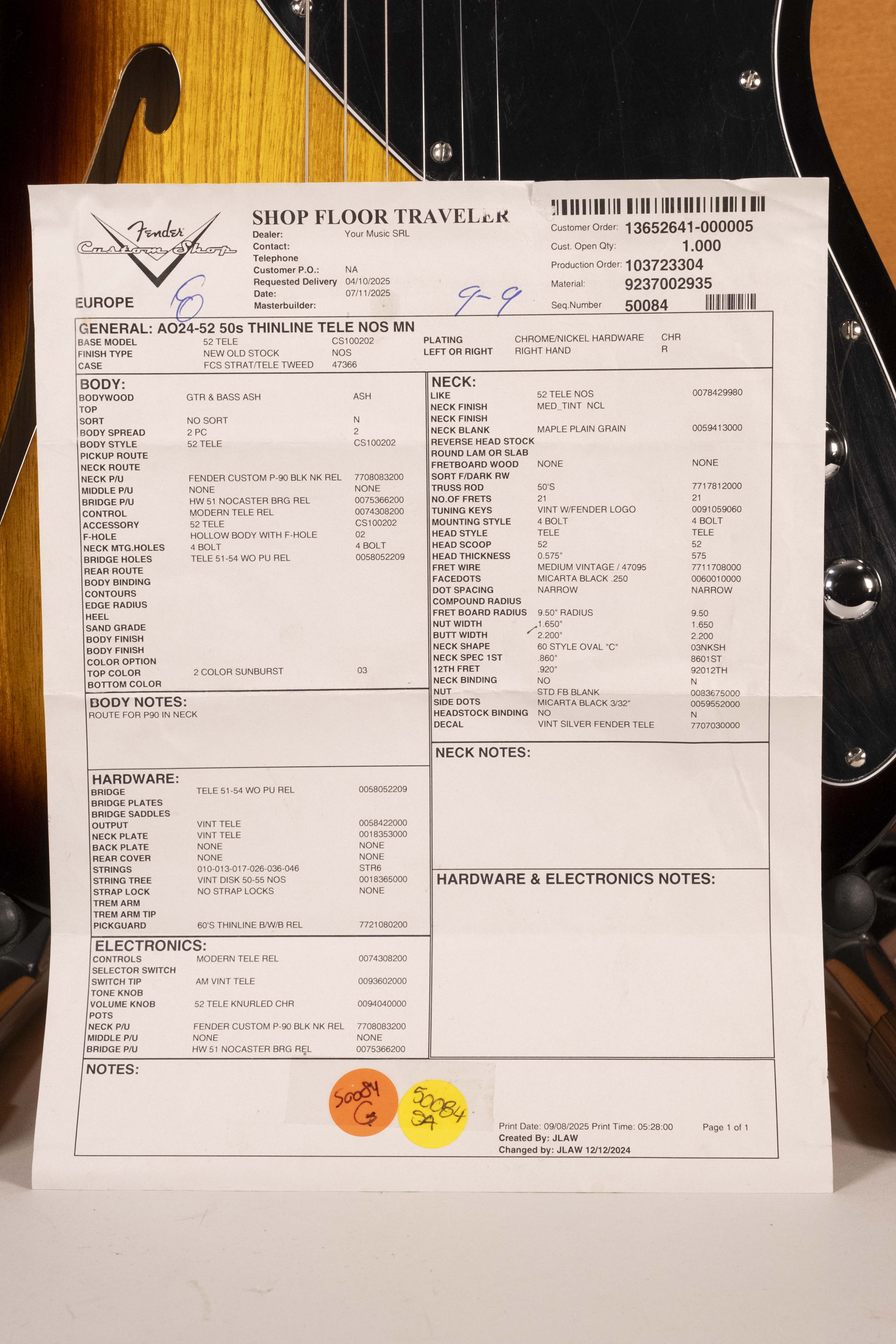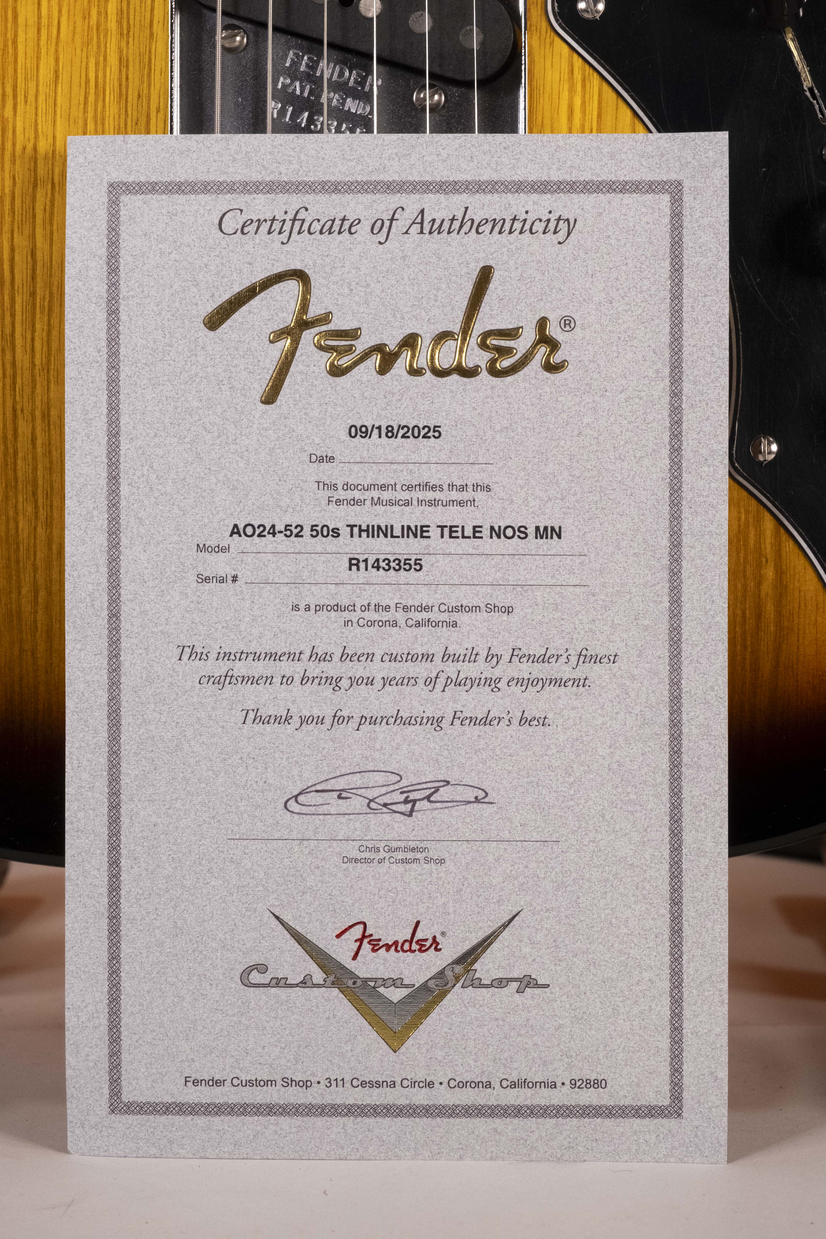 Realizzato con un corpo semi-hollow in frassino e un top in abete alpino Italiano con binding, questo strumento sfoggia una chiarezza eccezionale, vivaci risonanze e tutto il calore esclusivi del modelli Thinline. Il manico in acero fiammato roasted con profilo Modern “C” e la tastiera in ebano con raggio compound 7,25”-9,5” (18,4 - 24,1 cm) offrono un comfort sontuoso e una suonabilità senza limiti, mentre il ponte Tele® in stile vintage a 3 sellette compensate a barilotto in ottone garantiscono un'intonazione accurata e il classico timbro Tele. I pickup Suona Tele® e Custom Shop Twisted Tele® appositamente progettati producono sonorità ricche e vivaci, mentre la finitura Violin Burst Laccata alla Nitrocellulosa di qualità superiore con paletta in tinta completano questo strumento senza tempo.