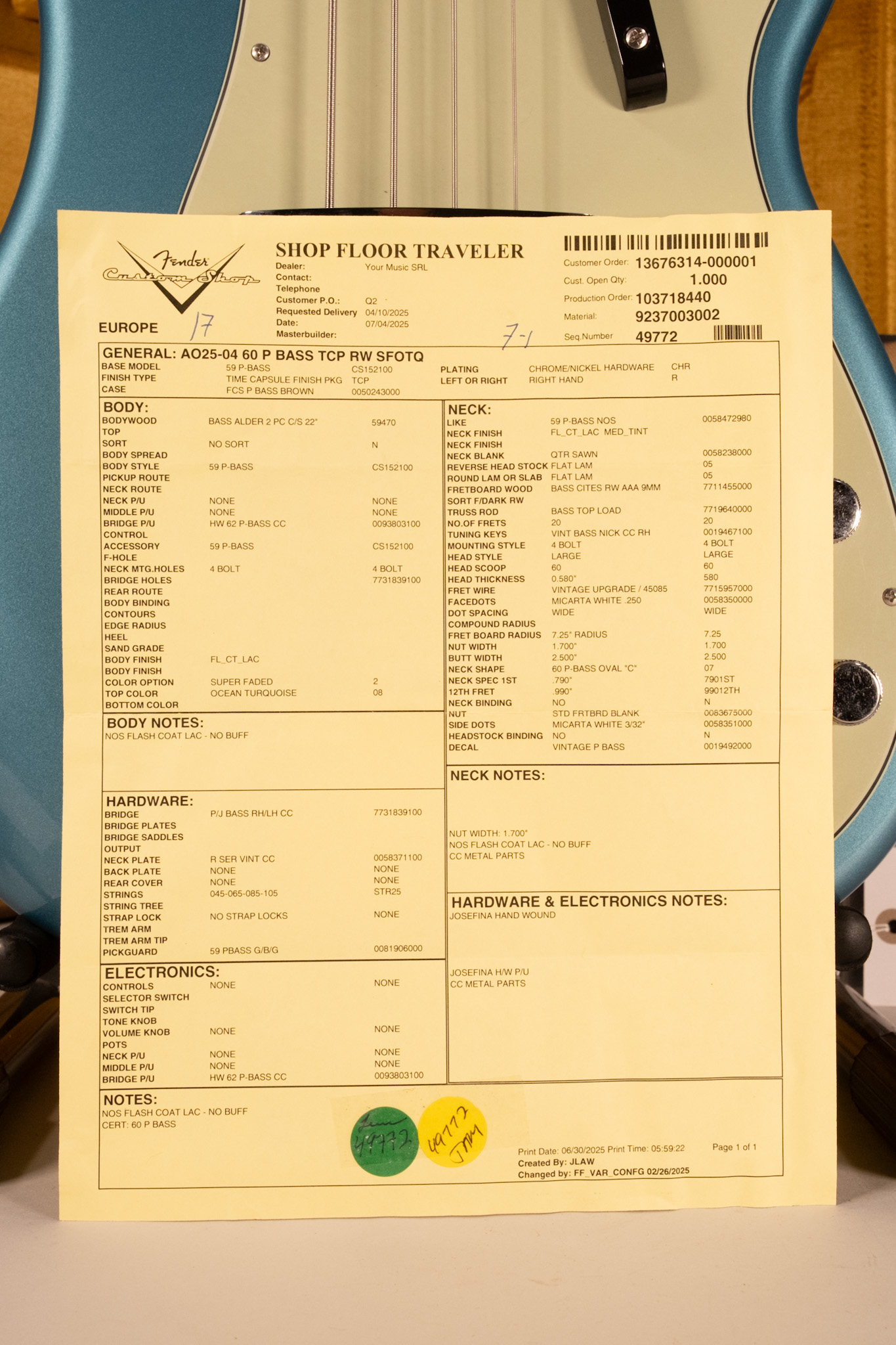 Fender Custom Shop 60 Precision Bass Ocean Turquoise