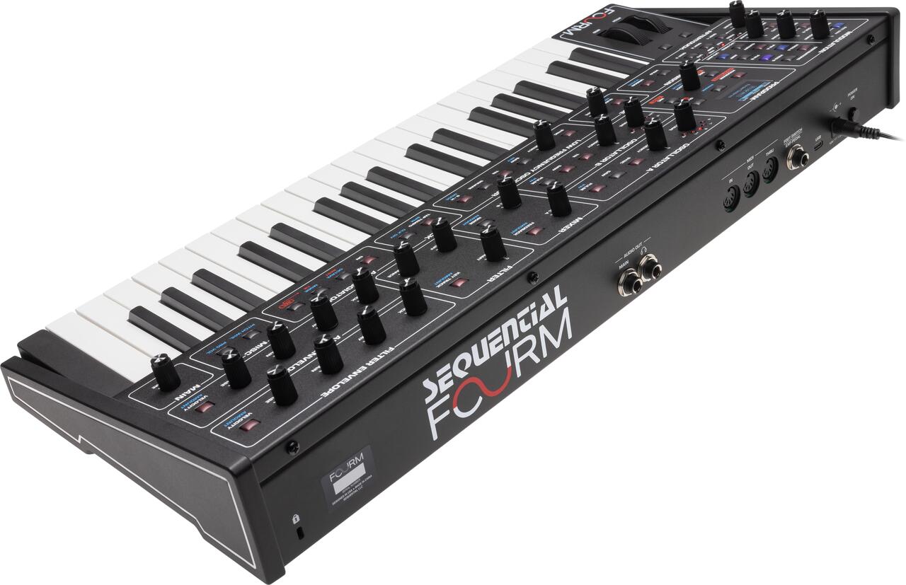 Fourm offre quattro autentiche voci di suono analogico sequenziale, basate sulla leggendaria architettura vocale del Prophet-5, fino alle sue caratteristiche curve di risposta all'inviluppo. Con due oscillatori che offrono la selezione simultanea delle forme d'onda e un classico filtro passa-basso a 4 poli con compensazione dei bassi, Fourm cattura il calore e la potenza che hanno plasmato una generazione, e li porta a un livello superiore.