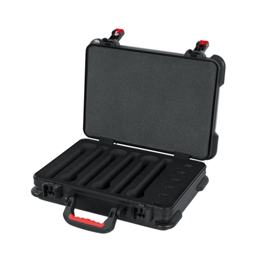 <h1 style="text-align: justify;">Il <strong>GTSA-MICW6</strong> è la <strong>custodia rigida per 6 microfoni wireless</strong> di casa <strong>Gator</strong> , progettata per garantire protezione e trasporto sicuro in ogni contesto professionale. Realizzata in robusto polietilene stampato in stile ATA, include chiusure compatibili con il sistema TSA. L'interno in schiuma comprende 6 alloggiamento per microfoni wireless e per le relative batterie. La maniglia ergonomica stampata a iniezione consente un trasporto comodo.</h1><h2>PANORAMICA DELLA CUSTODIA TSA ATA PER 6 MICROFONI WIRELESS GATOR GTSA-MICW6</h2><p style="text-align: justify;">Il <strong>Gator GTSA-MICW6</strong> è un case robusto e affidabile progettato per contenere fino a 6 microfoni wireless e le relative batterie. La costruzione in polietilene ad alta densità garantisce una protezione superiore da urti e vibrazioni, mentre l’interno è foderato in foam sagomato con alloggiamenti dedicati per microfoni lunghi fino a 26 cm e profondi 5,7 cm. Il sistema di chiusura include serrature TSA con piastre di deviazione d’urto e meccanismo di rilascio rosso, per una sicurezza affidabile anche durante i viaggi aerei. La maniglia ergonomica rinforzata e la ferramenta in acciaio verniciato nero completano un design curato e professionale, pensato per tour, studi, service audio e broadcast.</p><h2>PUNTI DI FORZA DELLA CUSTODIA TSA ATA PER 6 MICROFONI WIRELESS GATOR GTSA-MICW6</h2><ul style="text-align: 17px;"> <li>Progettato per contenere fino a 6 microfoni wireless;</li> <li>Interno in foam sagomato con spazi per batterie;</li> <li>Struttura rigida in polietilene stampato a iniezione;</li> <li>Serrature TSA con piastre antiurto e rilascio rapido;</li> <li>Maniglia ergonomica Ergo-Grip per un trasporto comodo.</li></ul><h2>SPEFICIFICHE TECNICHE DELLA CUSTODIA TSA ATA PER 6 MICROFONI WIRELESS GATOR GTSA-MICW6</h2><p><strong>Capacità:</strong> 6 microfoni wireless + batterie<br /><strong>Materiale esterno:</strong> polietilene stampato (ATA style)<br /><strong>Materiale interno:</strong> foam sagomato<br /><strong>Misure alloggiamenti microfoni:</strong> 26 cm (lunghezza) x 5,7 cm (profondità)<br /><strong>Chiusura:</strong> TSA con piastre antiurto e trigger rosso<br /><strong>Maniglia:</strong> Ergo-Grip, stampata a iniezione<br /><strong>Dimensioni esterne (LxPxA):</strong> 45.7 cm x 38.1 cm x 14 cm<br /><strong>Peso:</strong> 1,00 kg</p>
