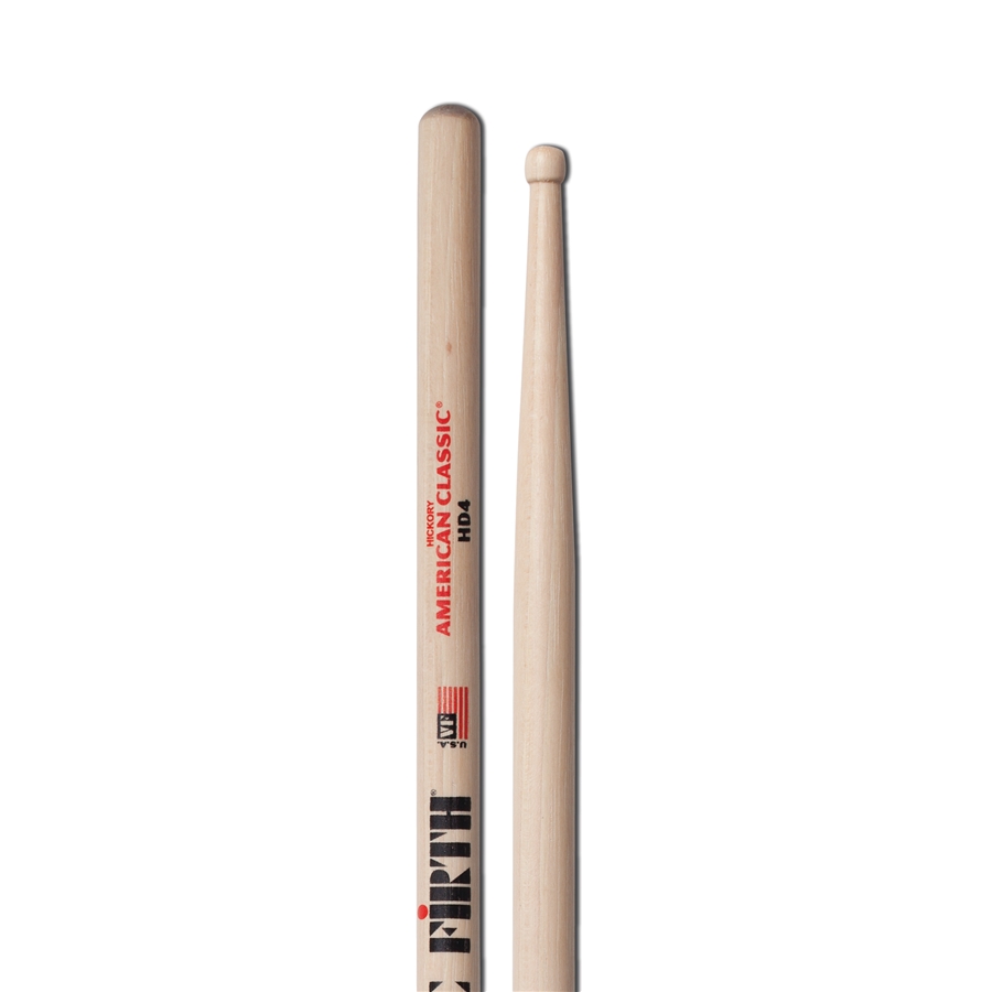 <h1>La bacchetta per batteria Vic Firth HD4 American Classic &egrave; una bacchetta con il design della originale SD4 di Vic, ma in hickory. Per un tocco leggero e un feeling eccezionale sulla batteria e con una durabilità maggiore.</h1><h2>Specifiche:</h2><h3>Diametro: .530"" | 1,35 cm<br />Lunghezza: 15,875&rdquo; | 40,32 cm<br />Famiglia: American Classic<br />Tipo di legno: Hickory<br />Cono: Medio<br />Finitura: Laccata<br />Materiale punta: Legno<br />Forma punta: Barile</h3>