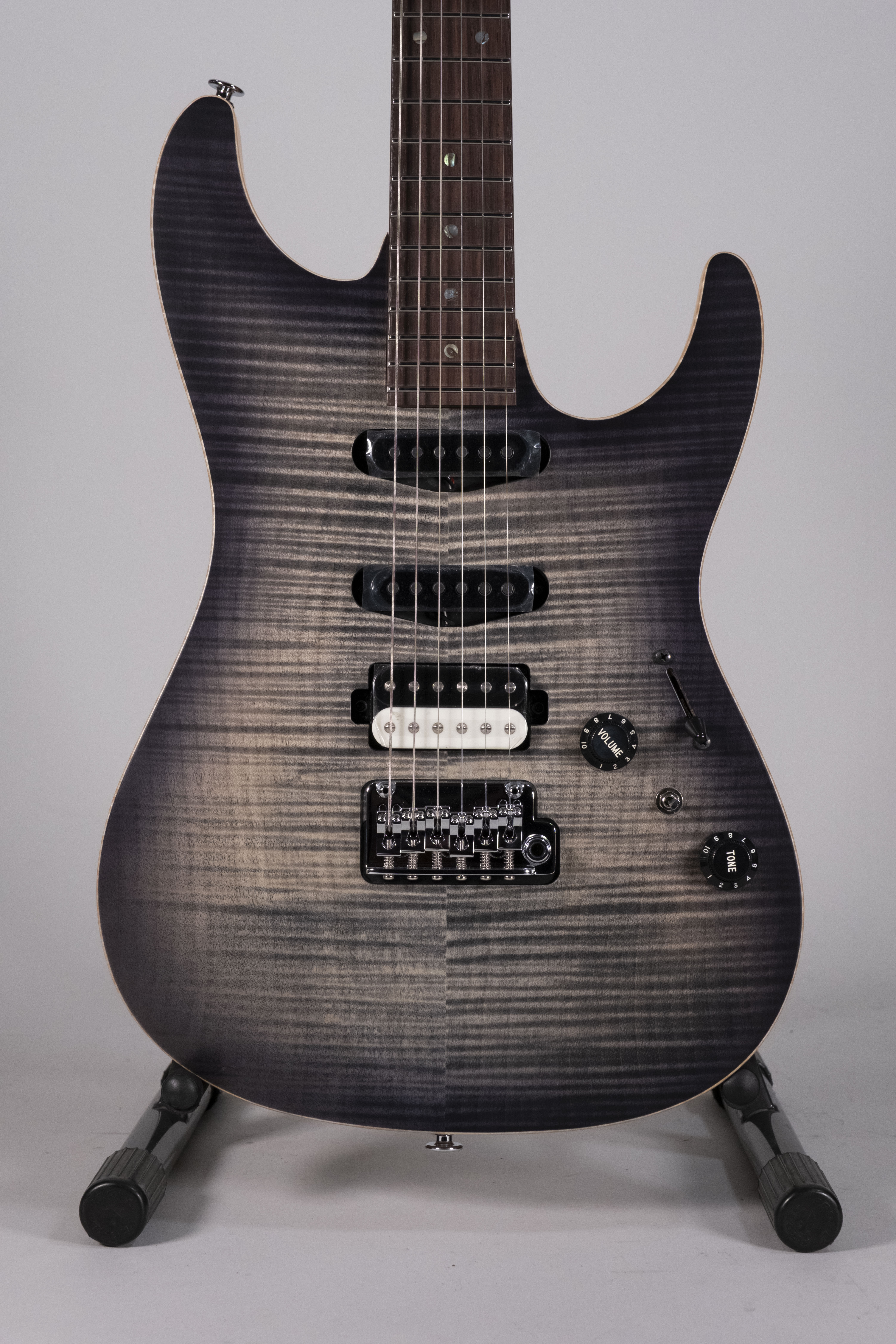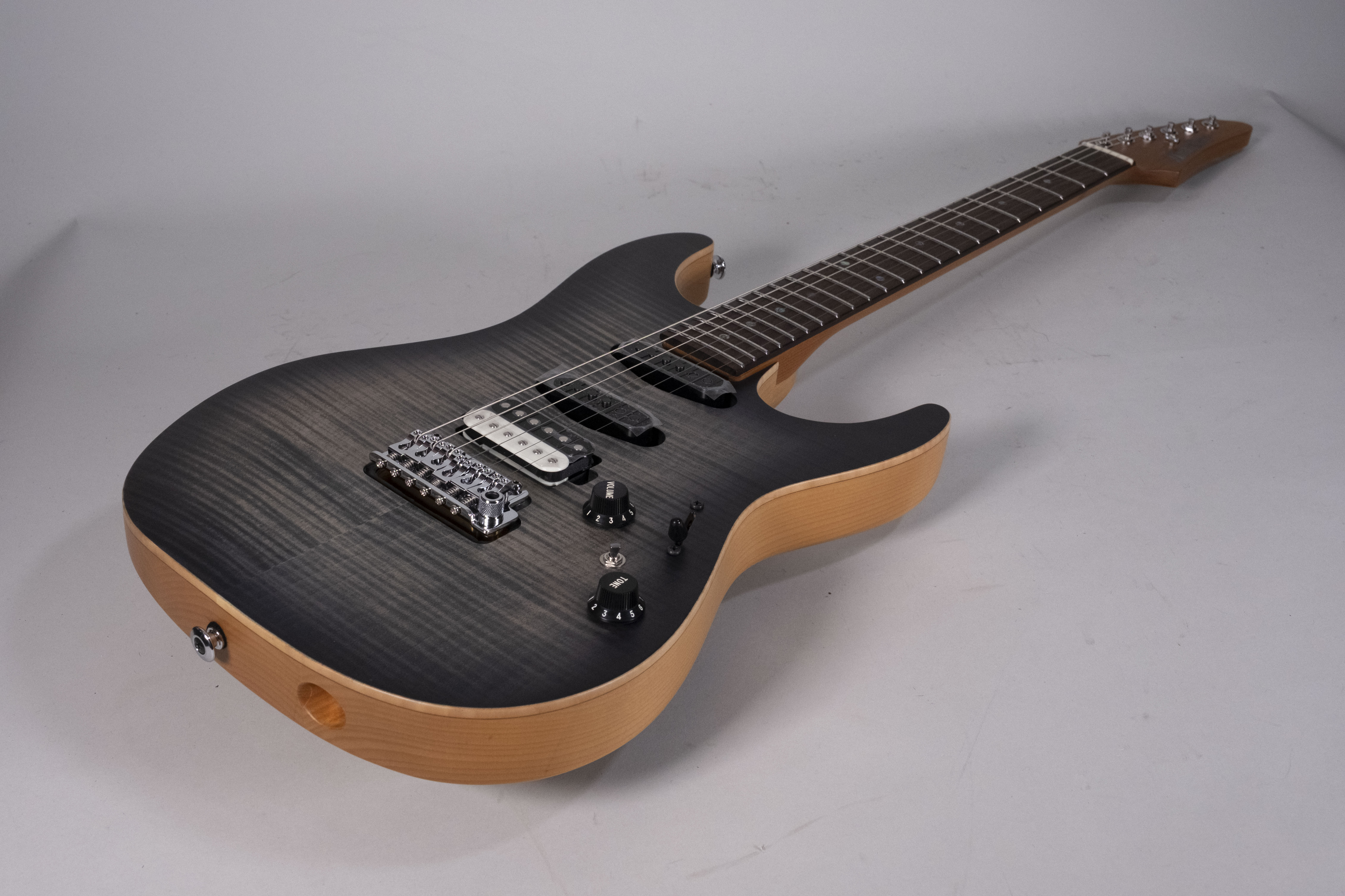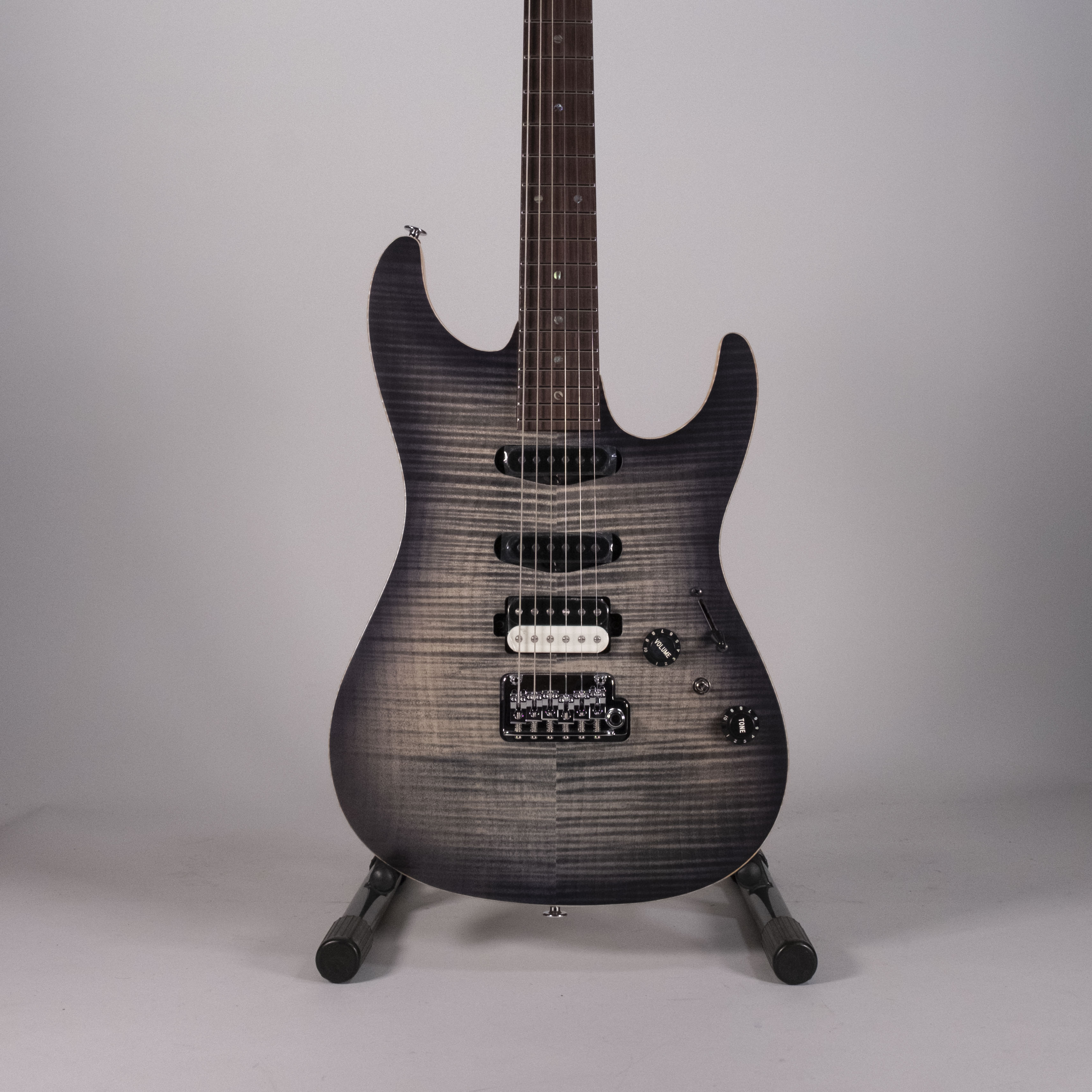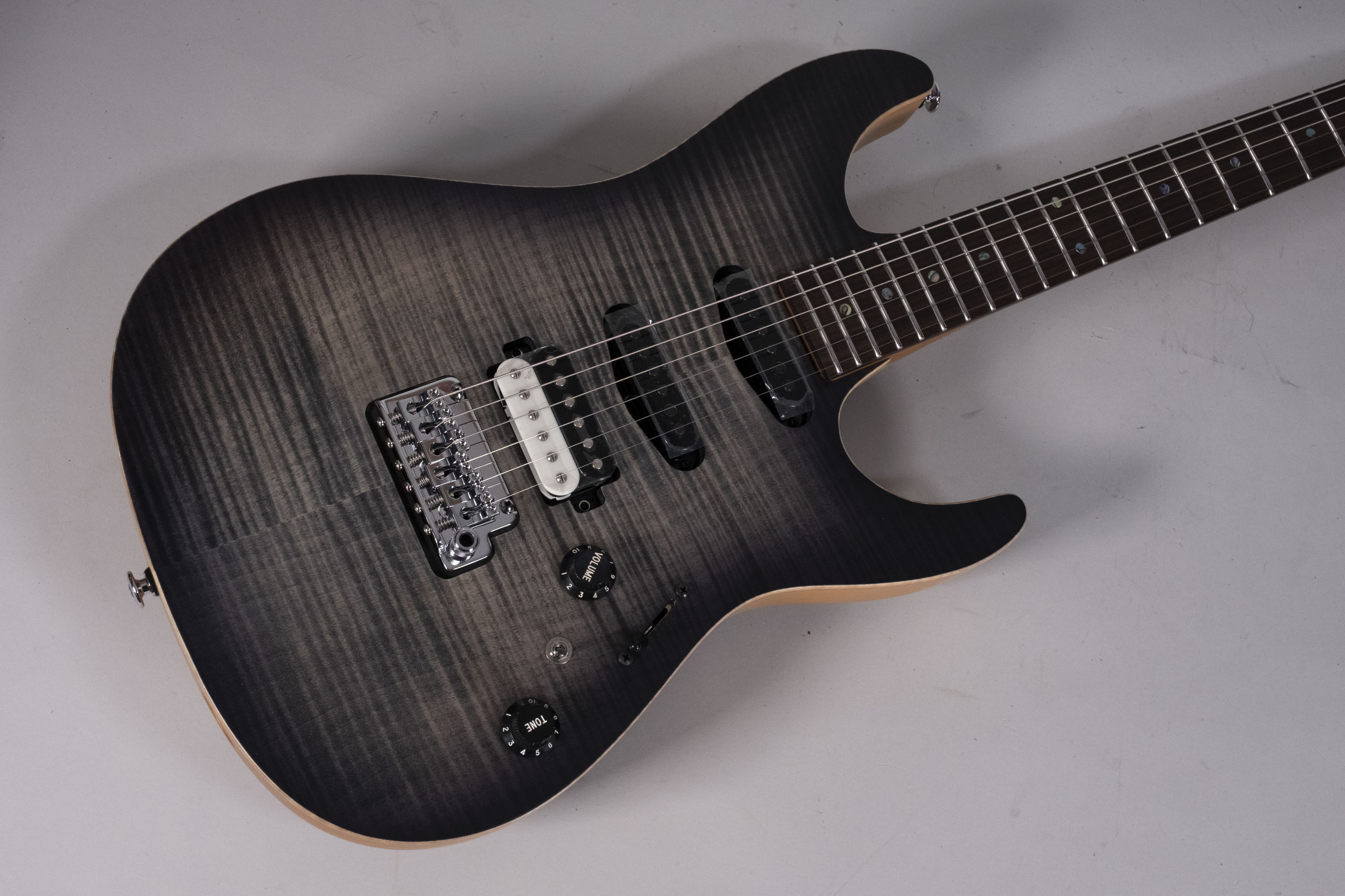 L'Ibanez TQM2-CUF Charcoal Black Burst Flat è la chitarra elettrica Signature Tom Quayle. Basata sui modelli AZ, questa chitarra è ideale per il Jazz e la Fusion. Il manico in S-TECH WOOD Roasted Maple, trattato per aumentare stabilità e resistenza, offre una sensazione simile a una chitarra ben suonata. La tastiera in Rosewood garantisce un tono bilanciato e solido. Tasti in acciaio inox con trattamento Prestige per una suonabilità veloce. Il top in Flamed Maple e il corpo in Alder offrono un suono brillante e risonante.