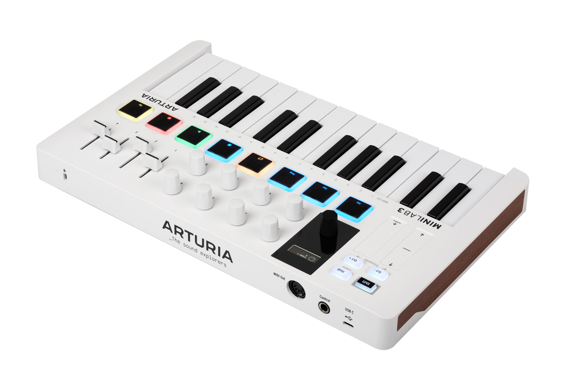 <h1 style="text-align: justify;"><strong><a href="https://algameko.com/it/app/b/arturia/">Arturia</a> MiniLab 3 White</strong> è un controller MIDI compatto in finitura White che unisce 25 slim-key, 8 pad RGB con sensibilità alla dinamica e alla pressione, 8 encoder e 4 fader, per controllare DAW e strumenti virtuali con un workflow immediato e pulito.</h1><h2 style="text-align: justify;"><strong>Tastiera slim-key e pad RGB per creare subito</strong></h2><p style="text-align: justify;"><strong>I 25 tasti slim velocity-sensitive</strong> sono perfetti per linee di basso, accordi e parti di synth con una risposta affidabile; i <strong>pad RGB</strong> con sensibilità alla <strong>dinamica </strong>e alla <strong>pressione </strong>(<strong>2 banchi</strong>) sono perfetti per <strong>finger drumming </strong>e <strong>clip launching</strong>. </p><h2 style="text-align: justify;"><strong>Controlli, fader e display: regia compatta</strong></h2><p style="text-align: justify;"><strong>8 encoder</strong> continui e <strong>4 fader </strong>permettono di gestire <strong>macro</strong>, <strong>strumenti </strong>e <strong>volumi direttamente dal controller</strong>. Il display OLED con encoder di selezione aiuta nel browsing e nel controllo in tempo reale dei paramtetri di DAW e VST.</p><h2 style="text-align: justify;"><strong>Strumenti creativi: arpeggiatore, Chord e performance features</strong></h2><p style="text-align: justify;"><strong>Arpeggiatore </strong>e <strong>Chord mode </strong>accelerano la composizione: trasformano accordi e idee in pattern, utili per elettronica, pop e colonne. Con <strong>Hold</strong>, trasposizione e ottave, la versione Champagne resta fluida anche in setup mobile o in studio quando vuoi prototipare senza perdere il momento.</p><h2 style="text-align: justify;"><strong>Integrazione DAW/Analog Lab, NKS e compatibilità ampia</strong></h2><p style="text-align: justify;"><strong>MiniLab 3</strong> offre integrazione con <strong>DAW </strong>tramite script dedicati e, dove necessario, compatibilità <strong>MCU</strong>/<strong>HUI</strong>. In piu, la compatibilità NKS facilita il lavoro dentro l’ecosistema Native Instruments. Con <strong>USB-C</strong> e <strong>MIDI Out DIN</strong>,<strong> </strong><strong>MiniLab 3 White </strong>controlla sia strumenti virtuali sia hardware esterno, senza cambiare abitudini.</p><h2 style="text-align: justify;"><strong>Eco-design e bundle software</strong></h2><p style="text-align: justify;">Anche in edizione White, la progettazione punta a sostenibilità e durata: plastica riciclata, packaging riciclato e garanzia estesa. Il bundle software fornisce DAW, strumenti e contenuti per produrre e imparare in modo immediato, senza “vuoti” in partenza.</p><h2 style="text-align: justify;"><strong>Specifiche tecniche Arturia MiniLab 3</strong></h2><p style="text-align: justify;">• Versione: MiniLab 3 White<br>• Tastiera: 25 tasti slim con sensibilità alla dinamica<br>• Pad: 2 banchi da 8 pad con sensibilità alla dinamica e alla pressione (aftertouch), retroilluminazione RGB<br>• Controlli: 8 encoder continui (endless) + 4 fader<br>• Display: mini display OLED con encoder di navigazione cliccabile<br>• Controller touch: 2 strip capacitivi per pitch bend e modulazione<br>• Funzioni creative: arpeggiatore integrato, Chord mode, Hold, trasposizione a semitoni, shift di ottava<br>• Integrazione software: mappature dedicate per DAW e integrazione con Analog Lab; compatibilità MCU/HUI<br>• Connettivita: USB-C (bus-powered, class-compliant) + uscita MIDI Out 5-pin DIN (utilizzabile anche come MIDI Thru)<br>• Ingresso pedale: 1/4" TRS per sustain, footswitch o pedale di espressione/controllo continuo<br>• Preset: 1 preset DAW + fino a 5 preset utente (user programs)<br>• Eco-design: minimo 50% plastica riciclata, packaging riciclato, garanzia 5 anni<br>• Software incluso: Analog Lab Intro, Ableton Live Lite, Native Instruments Komplete 15 Select (bundle a scelta), UVI Model D, Loopcloud (packs + subscription), Melodics (subscription)<br>• dimensione e peso: 355x220x50mm; 1,5kg</p><h2 style="text-align: justify;"><strong>Per ottenere il software incluso:</strong></h2><p style="text-align: justify;"><a href="https://www.arturia.com/fr/sign-up"><strong>Crea un account e registra lo strumento sul sito Arturia. (clicca qui)</strong></a></p><p style="text-align: justify;"><strong>NB</strong>: Gli applicativi software sono inclusi gratuitamente in dotazione a scopo promozionale e possono variare nel tempo senza preavviso.<strong> Algam EKO è esclusivamente responsabile dello strumento hardware</strong> e non può fornire assistenza tecnica o commerciale per il software fornito gratuitamente in dotazione o di terze parti utilizzato con il prodotto. Per il supporto software consultare il manuale o la guida in linea del software utilizzato.</p><p style="text-align: justify;"><strong>NB: L’utilizzo dei codici di autorizzazione, ovvero il download e l’attivazione del software fornito gratuitamente in dotazione, fa decadere il diritto di recesso.</strong></p>