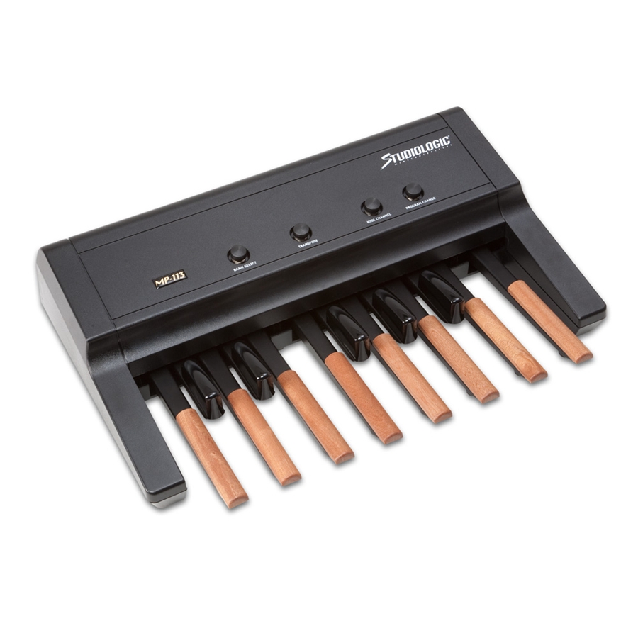 <h2><strong>MP 113 MIDI Pedalboard </strong>di<strong> Studiologic</strong> </h2><h2>Un MIDI Controller con <strong>13</strong> robusti pedali (Estensione <strong>C2-C3</strong>) sensibili alla <em>Velocity</em>, con un Layout essenziale, quindi estremamente semplice da utilizzare che può diventare la naturale estensione delle tue possibilità espressive, .</h2><p>Collega il tuo generatore sonoro preferito reale o virtuale controllando dinamicamente ogni messaggio di Nota trasmesso, oppure regolando da TRASPOSIZIONE (+/- 24 Semitoni), per suonare con l’estensione ideale per un determinato brano, è naturalmente possibile regolare il <strong>canale MIDI di trasmissione, </strong><strong>e inviare messaggi di </strong><strong>MIDI Program Change </strong><strong>per richiamare in modo remoto la Patch di cui avete bisogno</strong><strong>.</strong></p><p><strong>MP 113 </strong>è realizzata in un solido guscio in resina robusto e leggero nello stesso tempo, a prova di tour, facile da trasportare ma estremamente resistente.</p><p><strong>MP 113</strong> permette di aggiungere linee di basso, attivare varie funzioni su MIDI device esterni come: Loop, Groove, o accompagnamenti automatici; è il complemento ideale per il Set Up di ogni tastierista, ma molto utile anche a chitarristi, performer, cantanti, che hanno già le mani impegnate con il loro strumento.</p><h2><strong>MP 113 MIDI Pedalboard SPECIFICHE TECNICHE</strong></h2><ul> <li> <p><strong>MP 113: 13 note (Estensione C2 - C3)</strong></p> </li> <li>Risposta: Curva Dinamica</li> <li><strong>Caratteristiche</strong></li> <li>MIDI: 1 zona estensione completa</li> <li>Program Change, Bank Select, MIDI Channel, Transpose (max +/- 24 semitoni)</li> <li><strong>Controlli Interfaccia Utente</strong></li> <li>4 Tasti Funzione</li> <li>Tastierino numerico Virtuale</li> <li><strong>Connessioni</strong></li> <li>MIDI Out (DIN)</li> <li>Alimentazione: DC IN: 9V</li> <li>Adattatore</li> <li>Input: 100-240V / Output: 9V-1A</li></ul>SEO Titolo [IT]SEO Desc [IT]SEO Keywords [IT]