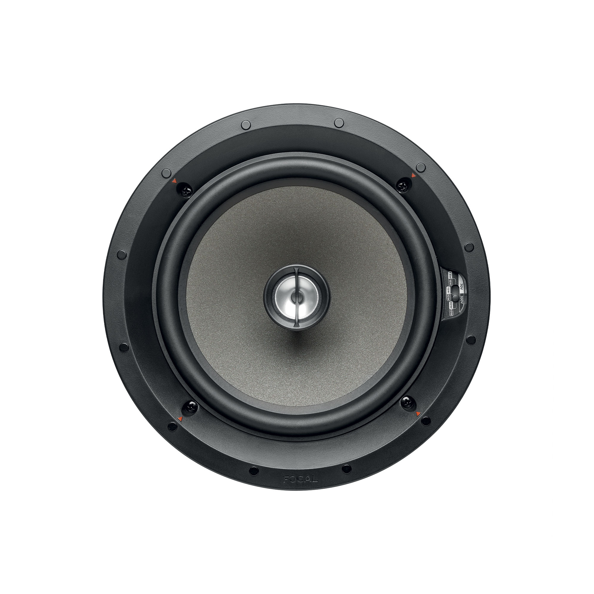 <h1 data-end="663" data-start="334">Il diffusore da incasso <strong>Focal 100 ICW8-T</strong> è un sistema a 2 vie coassiali progettato per applicazioni di diffusione sonora distribuita in ambienti residenziali e commerciali. Il diametro maggiorato del woofer consente una risposta più profonda sulle basse frequenze, mantenendo una diffusione sonora controllata e uniforme.</h1><p data-end="981" data-start="665">Il diffusore è dotato di un <strong data-end="730" data-start="693">midbass da 8 pollici in Polyglass</strong>, progettato per offrire una gamma media naturale, priva di colorazioni, e bassi ricchi e controllati. Il <strong data-end="892" data-start="836">tweeter da 1 pollice a cupola invertita in alluminio</strong> migliora la dispersione delle alte frequenze, garantendo una copertura ampia e omogenea.</p><p data-end="1314" data-start="983">Il crossover <strong data-end="1003" data-start="996">ODC</strong> contribuisce al controllo della direttività, evitando concentrazioni localizzate del suono tipiche delle installazioni a soffitto. Il trasformatore integrato consente la selezione della potenza per impianti <strong data-end="1225" data-start="1211">70V e 100V</strong> tramite interruttore dedicato, adattando il diffusore alle diverse esigenze di progetto.</p><p data-end="1850" data-start="1316">La struttura unibody ad alta rigidità riduce le vibrazioni indesiderate e migliora la stabilità meccanica. La resistenza all’umidità rende il diffusore adatto anche a installazioni in ambienti critici. Il sistema di montaggio con quattro staffe a presa ottimizzata consente un’installazione rapida e sicura; le viti sono progettate per non fuoriuscire durante le operazioni di smontaggio. Le griglie magnetiche incluse, rotonde o quadrate, sono verniciabili per un’integrazione estetica discreta.</p><p data-end="1850" data-start="1316"> </p><h2 data-end="1850" data-start="1316">Specifiche Tecniche</h2><p data-end="1850" data-start="1316"><strong data-end="1887" data-start="1874">Tipologia</strong>: diffusore da incasso a 2 vie coassiale<br data-end="1930" data-start="1927"><strong data-end="1947" data-start="1930">Installazione</strong>: parete o soffitto<br data-end="1969" data-start="1966"><strong data-end="1992" data-start="1969">Compatibilità linea</strong>: 70V e 100V selezionabili<br data-end="2021" data-start="2018"><strong data-end="2031" data-start="2021">Woofer</strong>: 8 pollici in Polyglass<br data-end="2058" data-start="2055"><strong data-end="2069" data-start="2058">Tweeter</strong>: 1 pollice a cupola invertita in alluminio<br data-end="2115" data-start="2112"><strong data-end="2140" data-start="2115">Risposta in frequenza</strong>: 53 Hz – 23 kHz<br data-end="2159" data-start="2156"><strong data-end="2180" data-start="2159">Frequenza a -6 dB</strong>: 40 Hz<br data-end="2190" data-start="2187"><strong data-end="2205" data-start="2190">Sensibilità</strong>: 90 dB a 2,83 V su 1 metro<br data-end="2235" data-start="2232"><strong data-end="2264" data-start="2235">Potenza selezionabile 70V</strong>: 7,5 W, 15 W, 30 W<br data-end="2286" data-start="2283"><strong data-end="2316" data-start="2286">Potenza selezionabile 100V</strong>: 15 W, 30 W, 60 W<br data-end="2337" data-start="2334"><strong data-end="2357" data-start="2337">Diametro esterno</strong>: 248 mm<br data-end="2368" data-start="2365"><strong data-end="2389" data-start="2368">Profondità totale</strong>: 111 mm<br data-end="2400" data-start="2397"><strong data-end="2428" data-start="2400">Diametro foro di incasso</strong>: 224 mm<br data-end="2439" data-start="2436"><strong data-end="2466" data-start="2439">Profondità dalla parete</strong>: 107 mm<br data-end="2477" data-start="2474"><strong data-end="2508" data-start="2477">Spessore parete compatibile</strong>: da 8 a 40 mm<br data-end="2525" data-start="2522"><strong data-end="2551" data-start="2525">Peso netto con griglia</strong>: 2,3 kg<br data-end="2562" data-start="2559"><strong data-end="2588" data-start="2562">Resistenza all’umidità</strong>: sì.</p>