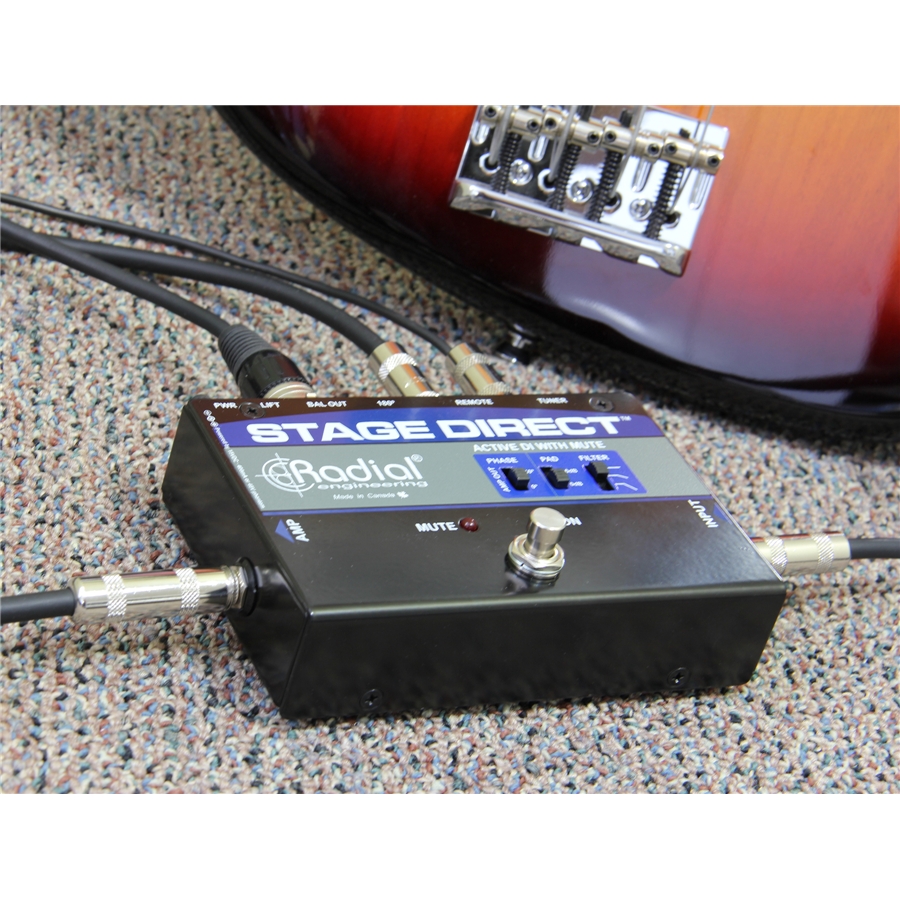 <h1 style="text-align: justify;">Con <strong>StageDirect </strong>di Radial Engineering <strong>Direct Box attiva</strong> dedicata a chitarristi e bassisti, è possibile collegare direttamente un Set Up composto da due strumenti, accordatore ed amplificatore con la commutazione silenziosa fra le varie uscite, bilanciarlo il segnale ed inviarlo ad un Mixer o un sistema di registrazione. </h1><p><img alt="Con Stage Direct di Radial Engineering Direct Box attiva dedicata a chitarristi e bassisti, è possibile collegare direttamente un Set Up composto da due strumenti, accordatore ed amplificatore con la commutazione silenziosa fra le varie uscite, bilanciarlo il segnale ed inviarlo ad un Mixer o un sistema di registrazione. " src="https://www.algameko.com/images/uploads/Stage-Direct-Top-1200x630.jpg" title="Con Stage Direct di Radial Engineering Direct Box attiva dedicata a chitarristi e bassisti, è possibile collegare direttamente un Set Up composto da due strumenti, accordatore ed amplificatore con la commutazione silenziosa fra le varie uscite, bilanciarlo il segnale ed inviarlo ad un Mixer o un sistema di registrazione. " /></p><h2><strong>Caratteristiche di rilievo</strong></h2><ul> <li>DI attiva con mute a pedale e uscita accordatore</li> <li>Commutazione silenziosa degli strumenti sul palco</li> <li>Elimina il feedback quando lo strumento non è in uso</li> <li>Il telecomando consente di disattivare il segnale durante la commutazione</li></ul><p style="text-align: justify;">La StageDirect di Radial è una direct box attiva, concepita per i musicisti che necessitano di un controllo extra sul palco, è dotata di <strong>ingresso Hi-Z per strumenti</strong>, un'uscita passante per l'amplificatore sul palco e un'uscita bilanciata Low-Z per il sistema PA. StageDirect dispone inoltre di un secondo ingresso Hi-Z, con un selettore a pedale per il passaggio istantaneo tra due strumenti, di un'uscita dedicata per l’accordatore e di un interruttore Mute a pedale che silenzia il segnale diretto al PA e all'amplificatore, lasciando attiva solo l'uscita per accordatore. In questo modo il musicista può silenziare la chitarra quando non è in uso o accordarla tra un brano e l'altro.</p><p style="text-align: justify;">L'innovativo design del circuito combina un driver di ingresso FET di classe A con un amplificatore operazionale a basso rumore che offre audio di qualta qualità su tutta la gamme delle frequenze. È presente un pad d'attenuazione -10 dB per strumenti con alti livelli d'uscita come basi o tastiere. Il filtro passa-alto attenua i bassi eccessivi mentre l'inversione di polarità a 180° può essere utilizzato per aiutare l'allineamento di fase dell'amplificatore sul palco con il PA o per eliminare i “punti caldi” acustici sul palco.</p><h3><strong>StageDirect Applicazioni</strong></h3><p><strong>Chitarra acustica</strong></p><p><strong><img alt="E' possibile passare liberamente da uno strumento all'altro, inviando contemporanemente un segnale pulito al PA e all'amplificatore da palco. I LED forniscono un feedback visivo immediato per sapere quale strumento è attivo." src="https://www.algameko.com/images/uploads/Applicazioni-01.jpg" title="E' possibile passare liberamente da uno strumento all'altro, inviando contemporanemente un segnale pulito al PA e all'amplificatore da palco. I LED forniscono un feedback visivo immediato per sapere quale strumento è attivo." /></strong></p><p>E' possibile passare liberamente da uno strumento all'altro, inviando contemporanemente un segnale pulito al PA e all'amplificatore da palco. I LED forniscono un feedback visivo immediato per sapere quale strumento è attivo.</p><p><strong>Basso elettrico</strong></p><p><strong><img alt="Con StageDirect è possibile passare in modo silenziso dal basso attivo a quello passivo, inviando un segnale DI bilanciato al PA e allo stesso tempo alimentare un amplificatore da palco. l'interruttore mute permette l'accordatura silenziosa tra un brano e l'altro." src="https://www.algameko.com/images/uploads/Applicazioni-02.jpg" title="Con StageDirect è possibile passare in modo silenziso dal basso attivo a quello passivo, inviando un segnale DI bilanciato al PA e allo stesso tempo alimentare un amplificatore da palco. l'interruttore mute permette l'accordatura silenziosa tra un brano e l'altro." /></strong></p><p>Con StageDirect è possibile passare in modo silenziso dal basso attivo a quello passivo, inviando un segnale DI bilanciato al PA e allo stesso tempo alimentare un amplificatore da palco. l'interruttore mute permette l'accordatura silenziosa tra un brano e l'altro.</p><p><strong>Mandolino/Dobro</strong></p><p><strong><img alt="Utilizzando un commutatore remoto come il Radial JR1-M™ è possibile disattivare il segnale audio durante l'accordatura o il cambio dei cavi degli strumenti, rendendo più facile al musicista la concentrazione sulla propria esecuzione senza altre preoccupazioni." src="https://www.algameko.com/images/uploads/Applicazioni-03.jpg" title="Utilizzando un commutatore remoto come il Radial JR1-M™ è possibile disattivare il segnale audio durante l'accordatura o il cambio dei cavi degli strumenti, rendendo più facile al musicista la concentrazione sulla propria esecuzione senza altre preoccupazioni." /></strong></p><p>Utilizzando un commutatore remoto come il Radial JR1-M™ è possibile disattivare il segnale audio durante l'accordatura o il cambio dei cavi degli strumenti, rendendo più facile al musicista la concentrazione sulla propria esecuzione senza altre preoccupazioni.</p><h2><u><strong>Specifiche Tecnice StageDirect</strong></u></h2><ul> <li style="margin-left: 2.6pt;"> <strong>Tipo di circuito audio</strong> Classe A-FET</li> <li style="margin-left: 2.6pt;"> <strong>Risposta in frequenza</strong> 20 Hz – 20 kHz</li> <li style="margin-left: 2.6pt;"> <strong>Gain</strong> +5 dB</li> <li style="margin-left: 2.6pt;"> <strong>Gamma dinamica</strong> 100 dB</li> <li style="margin-