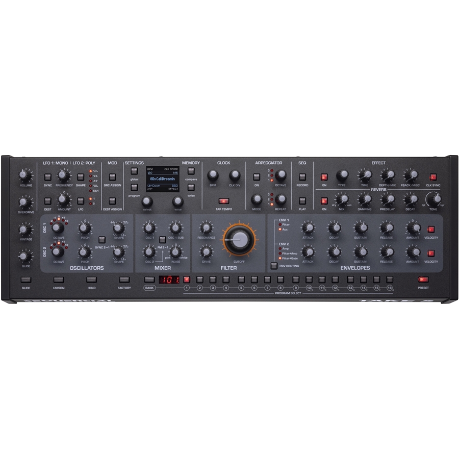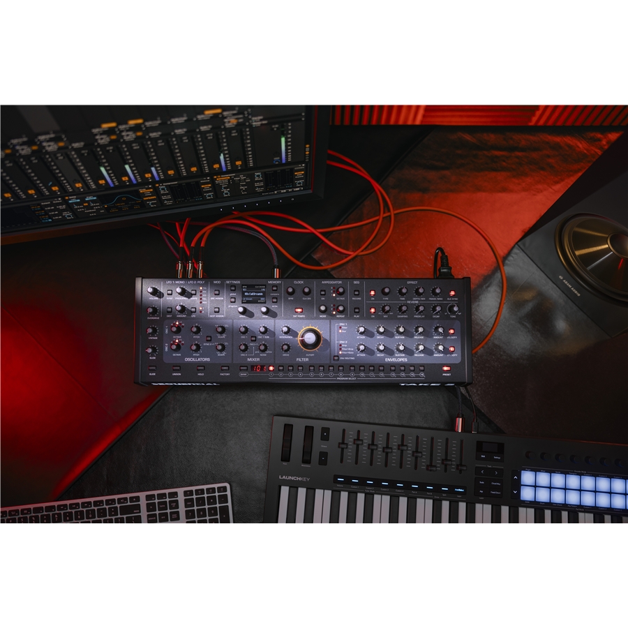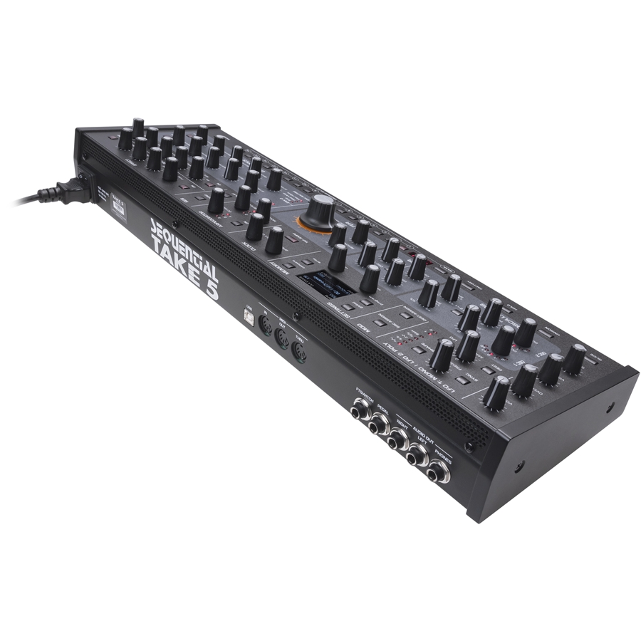 <p data-end="1025" data-start="319" style="text-align: justify;">Nel <strong>Sequential Take 5 Desktop Module</strong> si fondono l’iconico carattere sonoro dell’analogico americano con la praticità di un modulo compatto da studio dal peso di soli 3,08KG e con un ingombro di soli 53,3×17,8×8,9cm. Questa versione desktop mantiene gli stessi oscillatori e filtri analogici ispirati al Prophet-5 presenti nel Take 5 a tastiera, inclusi gli effetti digitali e un'ampia matrice di modulazione. Tutto ciò che ha reso celebre la versione a tastiera è ora disponibile in un formato snello, ideale per home studio e set live moderni. Il layout intuitivo e pieno di controlli manuali rende la progettazione sonora immediata e creativa, con accesso diretto a ogni parametro. Portatile, potente e pronto all’uso: il <strong>Take 5 Desktop</strong> è pensato per ispirare.</p><p data-end="1025" data-start="319" style="text-align: center;"><iframe width="1840" height="1035" src="https://www.youtube.com/embed/8kUEveCGMLM" title="Take 5 Poly Chain OS Update" frameborder="0" allowfullscreen=""></iframe></p><h2 data-end="1071" data-start="1032" style="text-align: justify;"><strong>Formato compatto, la stessa potenza analogica e versatilità sonora</strong></h2><p data-end="1574" data-start="1073" style="text-align: justify;">Il <strong>Take 5 Desktop</strong> offre una sintesi analogica a 5 voci con due VCO per voce, sub-oscillatori, filtro low-pass risonante a 4 poli, FM, arpeggiatore, sequencer a 64 step e una sezione effetti con riverbero, overdrive e multi-effetti di stampo vintage. L’interfaccia frontale, ricca di knob e pulsanti, rende l’esperienza immediata e coinvolgente. Grazie alla connettività MIDI e USB, al clock sincronizzabile è il compagno perfetto in ogni configurazione live o in studio di registrazione.</p><h2 data-end="1633" data-start="1581" style="text-align: justify;"><strong>Caratteristiche Sequential Take 5 Desktop Module</strong></h2><p data-end="1647" data-start="1635" style="text-align: justify;"><strong data-end="1647" data-start="1635">Sintesi analogica:</strong></p><ul data-end="1987" data-start="1648"> <li data-end="1692" data-start="1648"> <p data-end="1692" data-start="1650" style="text-align: justify;">Polifonia a 5 voci con VCO e VCF analogici</p> </li> <li data-end="1727" data-start="1693"> <p data-end="1727" data-start="1695" style="text-align: justify;">2 oscillatori analogici per voce</p> </li> <li data-end="1810" data-start="1728"> <p data-end="1810" data-start="1730" style="text-align: justify;">Onde variabili continuamente: sinusoidale, a dente di sega e a impulsi variabili</p> </li> <li data-end="1856" data-start="1811"> <p data-end="1856" data-start="1813" style="text-align: justify;">Hard sync tra Oscillatore 1 e Oscillatore 2</p> </li> <li data-end="1896" data-start="1857"> <p data-end="1896" data-start="1859" style="text-align: justify;">Generatore sub-ottava (Oscillatore 1)</p> </li> <li data-end="1939" data-start="1897"> <p data-end="1939" data-start="1899" style="text-align: justify;">FM tra oscillatori via pannello frontale</p> </li> <li data-end="1987" data-start="1940"> <p data-end="1987" data-start="1942" style="text-align: justify;">Tracking tastiera on/off per ogni oscillatore</p> </li></ul><p data-end="1999" data-start="1989" style="text-align: justify;"><strong data-end="1999" data-start="1989">Mixer:</strong></p><ul data-end="2071" data-start="2000"> <li data-end="2071" data-start="2000"> <p data-end="2071" data-start="2002" style="text-align: justify;">Controllo volume per Osc 1, Osc 1 Sub, Osc 2 e rumore (bianco o rosa)</p> </li></ul><p data-end="2084" data-start="2073" style="text-align: justify;"><strong data-end="2084" data-start="2073">Filtro:</strong></p><ul data-end="2246" data-start="2085"> <li data-end="2149" data-start="2085"> <p data-end="2149" data-start="2087" style="text-align: justify;">Filtro low-pass a 4 poli risonante, ispirato al Prophet-5 Rev4</p> </li> <li data-end="2198" data-start="2150"> <p data-end="2198" data-start="2152" style="text-align: justify;">Auto-oscillazione attivabile tramite Resonance</p> </li> <li data-end="2246" data-start="2199"> <p data-end="2246" data-start="2201" style="text-align: justify;">Controllo bi-polare della envelope sul filtro</p> </li></ul><p data-end="2262" data-start="2248" style="text-align: justify;"><strong data-end="2262" data-start="2248">Inviluppi:</strong></p><ul data-end="2406" data-start="2263"> <li data-end="2301" data-start="2263"> <p data-end="2301" data-start="2265" style="text-align: justify;">2 inviluppi a 5 stadi (ADSR + delay)</p> </li> <li data-end="2361" data-start="2302"> <p data-end="2361" data-start="2304" style="text-align: justify;">Assegnazione libera a filtro, amplificatore e modulazioni</p> </li> <li data-end="2406" data-start="2362"> <p data-end="2406" data-start="2364" style="text-align: justify;">Modulazione via velocity su ogni inviluppo</p> </li></ul><p data-end="2416" data-start="2408" style="text-align: justify;"><strong data-end="2416" data-start="2408">LFO:</strong></p><ul data-end="2623" data-start="2417"> <li data-end="2452" data-start="2417"> <p data-end="2452" data-start="2419" style="text-align: justify;">2 LFO: uno globale e uno per voce</p> </li> <li data-end="2543" data-start="2453"> <p data-end="2543" data-start="2455" style="text-align: justify;">5 forme d’onda: triangolare, dente di sega, dente di sega inverso, quadra, sample & hold</p> </li> <li data-end="2584" data-start="2544"> <p data-end="2584" data-start="2546" style="text-align: justify;">Sincronizzabili a clock interno o MIDI</p> </li> <li data-end="2623" data-start="2585"> <p data-end="2623" data-start="2587" style="text-align: justify;">Assegnabili a qualsiasi destinazione</p> </li></ul><p data-end="2640" data-start="2625" style="text-align: justify;"><strong data-end="2640" data-start="2625">Mod Matrix:</strong></p><ul data-end="2727" data-start="2641"> <li data-end="2672" da