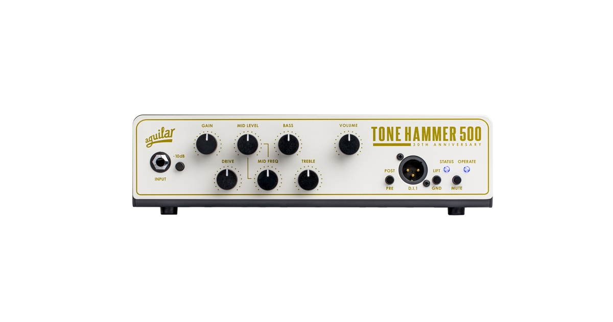 <h1 style="text-align:justify;">La TH 500 V2 LE 30TH celebra il 30° anniversario di Aguilar con un design esclusivo e le stesse prestazioni sonore che hanno reso celebre la Tone Hammer. Questa edizione limitata si distingue per il frontalino color panna e i dettagli dorati, aggiungendo un tocco di eleganza alla funzionalità e alla qualità sonora eccezionale che i bassisti si aspettano da Aguilar.</h1><h2 style="text-align:justify;">Punti di forza della testata TH 500 V2 LE 30TH</h2><p style="text-align:justify;">- Potenza di 500 Watt su 4 ohm, ideale per palchi e studi di registrazione.<br />- Design esclusivo con frontalino color panna e dettagli oro per celebrare il 30° anniversario Aguilar.<br />- Modulo IR Loader con tre simulazioni di cabinet modificabili tramite Aguilar Suite e USB.<br />- EQ a 3 bande con controllo dedicato alle medie e overdrive integrato.<br />- Doppia uscita DI XLR per inviare segnali pre/post EQ, perfetta per monitor in-ear e reamp.<br />- Ingresso Aux In e uscita cuffie con controllo di volume dedicato per praticare in silenzio.<br />- Trasformatore automatic switching che si adatta automaticamente alla tensione in ingresso.</p><h2 style="text-align:justify;">Specifiche tecniche della TH 500 V2 LE 30TH</h2><p style="text-align:justify;"><strong>Potenza:</strong> 500 Watt su 4 ohm, 250 Watt su 8 ohm<br /><strong>Sezione preamp:</strong> Stato solido<br /><strong>Sezione finale:</strong> Classe D<br /><strong>EQ:</strong><br />- Bass: +/- 17 dB @ 40 Hz<br />- Mid Level: +/- 16 dB<br />- Mid Frequency: 180 Hz - 1 kHz<br />- Treble: +/- 14 dB @ 4 kHz<br /><strong>Ingressi/Uscite:</strong><br />- Input: Jack 1/4", compatibile con bassi attivi e passivi<br />- Speaker Out: 2 uscite Neutrik Speakon<br />- Uscita Bilanciata: XLR con pre/post EQ e switch ground lift<br />- Loop Effetti: +6 dB di gain addizionale<br /><strong>Dimensioni:</strong><br />- Altezza: 6,99 cm<br />- Larghezza: 27,31 cm<br />- Profondità: 21,59 cm<br />- Peso: 1,81 kg<br /><strong>Novità della seconda generazione:</strong><br />- Modulo IR Loader<br />- Doppia uscita DI XLR<br />- Aux In e uscita cuffie<br />- Trasformatore automatic switching</p>