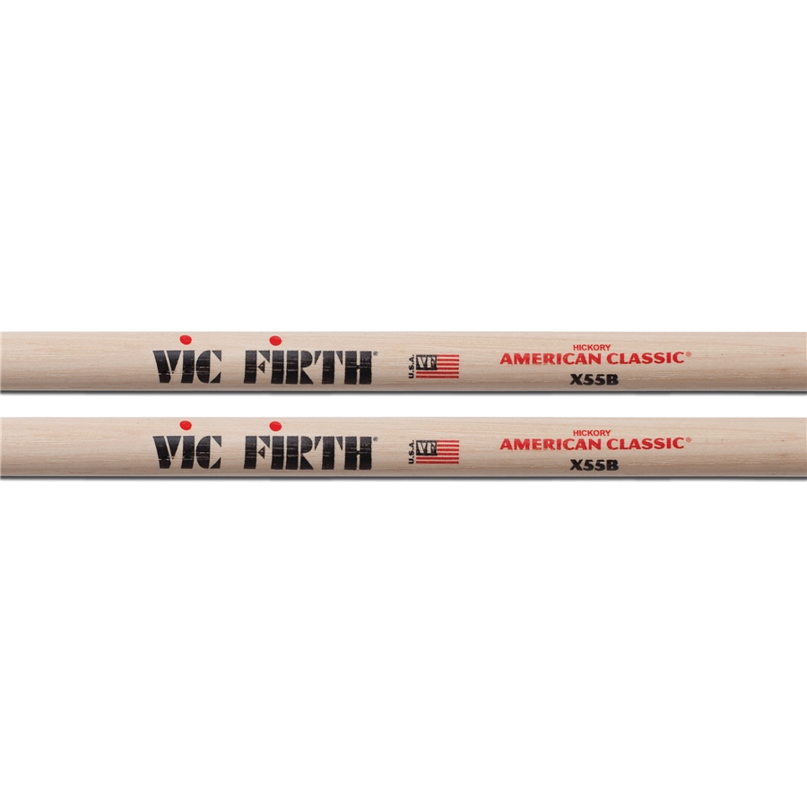 <h1>La bacchetta per batteria Vic Firth X55B American Classic Hickory &egrave; Una 5B con spessore e lunghezza del corpo maggiorati. Volume sonoro e potenza con una sensazione eccezionale!</h1> <h2>Specifiche:</h2> <h3>Diametro: .610"" | 1,55 cm<br />Lunghezza: 16,5" | 41,91 cm<br />Famiglia: American Classic<br />Tipo di legno: Hickory<br />Cono: Medio<br />Finitura: Laccata<br />Materiale punta: Legno<br />Forma punta: Goccia</h3>